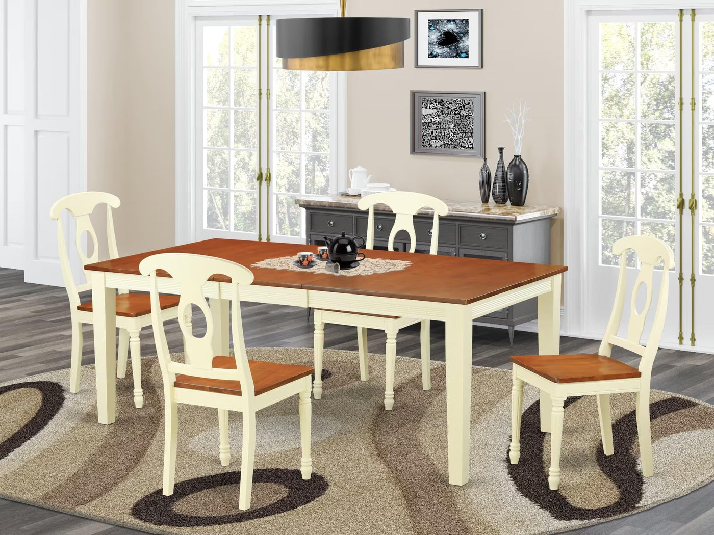East West Furniture QUKE5-WHI-W 5 Piece Dining Room Furniture Set Includes a Rectangle Wooden Table with Butterfly Leaf and 4 Kitchen Dining Chairs, 40x78 Inch, Buttermilk & Cherry