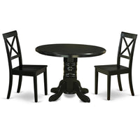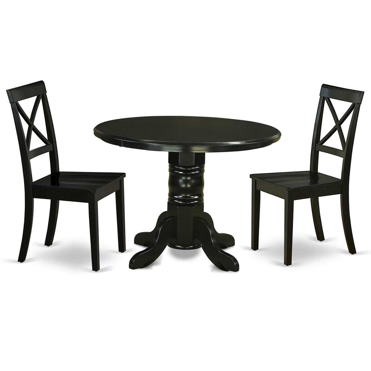 East West Furniture - Shbo3-Blk-W 3-Piece Dining Table Setintroducing A Meticulously Curated Dining Experience With Our 3-Piece Dining Table Set That Encapsulates Refined Elegance. This Ensemble Features A Tastefully Designed Dining Table Accompanied By 2 Pairs Of Exquisitely Crafted Dining Chairs. Meticulously Crafted, This Oval Dining Table Boasts A Remarkably Resilient Black Finish That Seamlessly Spans From Its Tabletop To The Intricately Designed Pedestal Legs. Its Versatile Aesthetic Is Adept At Effortlessly Complementing An Extensive Array Of Home Decor Styles, Thereby Ensuring Its Enduring And Timeless Appeal For Years To Come. Crafted From The Highest-Grade Asian Rubberwood, Renowned For Its Exceptional Quality, This Exquisite Dining Table Set Embodies A Commitment To Premium Craftsmanship. The Inherent Durability Of This Wood Is Attributed To Its Densely Packed Grain Structure. Fabricated Utilizing Premium Wood The Seats Of This Chair Serve To Not Only Elevate The Aesthetic Quotient Of The Kitchen But Also To Prioritize Optimal Comfort. The Seats, Generously Proportioned And Meticulously Fashioned, Have Been Ingeniously Engineered To Enhance Comfort Levels Significantly. Our Assortment Of Mid-Century Chairs Proudly Showcases A Sophisticated Back Design That Seamlessly Complements A Broad Spectrum Of Decor Styles, Ranging From The Rustic To The Modern.Product Features: Material: Asian Hardwood Color: Black Table Dimensions: Length: 42; Width: 42; Height: 30. Chair Dimensions: Length: 21; Width: 18; Height: 38. Weight Capacity: 300 Lbs.Includes: 1 Round Table And 2 Wooden Chairs.