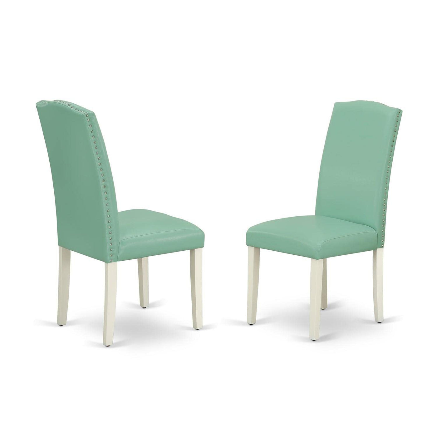 East West Furniture - Shen5-Lwh-57 - 5 Piece Dining Setthis Dining Room Set Includes 5 Pieces A Round Pedestal Dining Table And 4 Dining Chairs With Upholstery. Their Timeless Aesthetic Enhances Any Residence, Blending Seamlessly With Various Interior Decor Styles. Add Contemporary Sophistication To Your Dining Space With Our Exquisite Set, Featuring A Linen White Tabletop And Matching Finish On The Table'S Legs. The Chairs, Accented In Pond Hues, Boast Linen White Finish Wooden 4 Legs, Elevating Any Home. Crafted From Rubberwood, The Set Includes Anti-Slipping Protectors And Faux Leather Seat Adorned Parson Chairs, Enhancing Both Elegance And Comfort. The Mid-Century Dining Chairs Effortlessly Complement Any Decorative Motif, While The Linen White Kitchen Table Adds A Glossy Focal Point. This Durable Kitchen Table Suits Various Spaces And Concepts. Upgrade To This Budget-Friendly Dining Set For A Refreshed Dining Experience With Friends And Family, Offering Both Style And Comfort.Product Features Material: Asian Hardwood Color: Linen White Fabric: Pu Leather Cushion Material: Foam Fabric Color: Pond Chair Dimensions: Length: 24.5; Width: 19; Height: 40.5. Table Dimensions: Length: 42; Width: 42; Height: 30. Weight Capacity: 300 Lbs.Includes: A Round Table And 4 Parson Chairsthe Hardware Package And Instruction Manual Are Located In/Under The Seat.