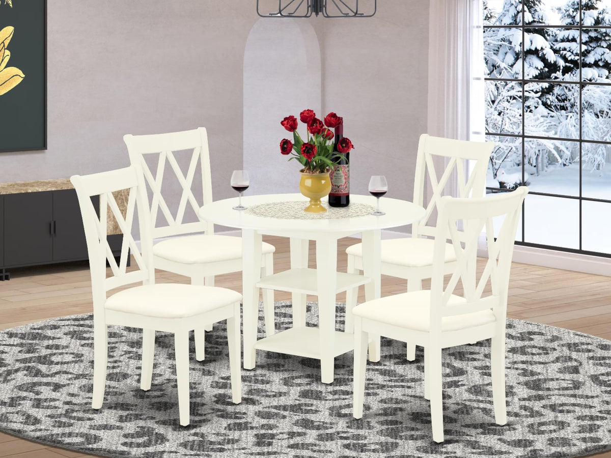 East West Furniture Sucl5-Lwh-C 5 Piece Dining Room Table Set Includes A Round Kitchen Table With Dropleaf & Shelves And 4 Linen Fabric Upholstered Dining Chairs, 42X42 Inch, Linen White