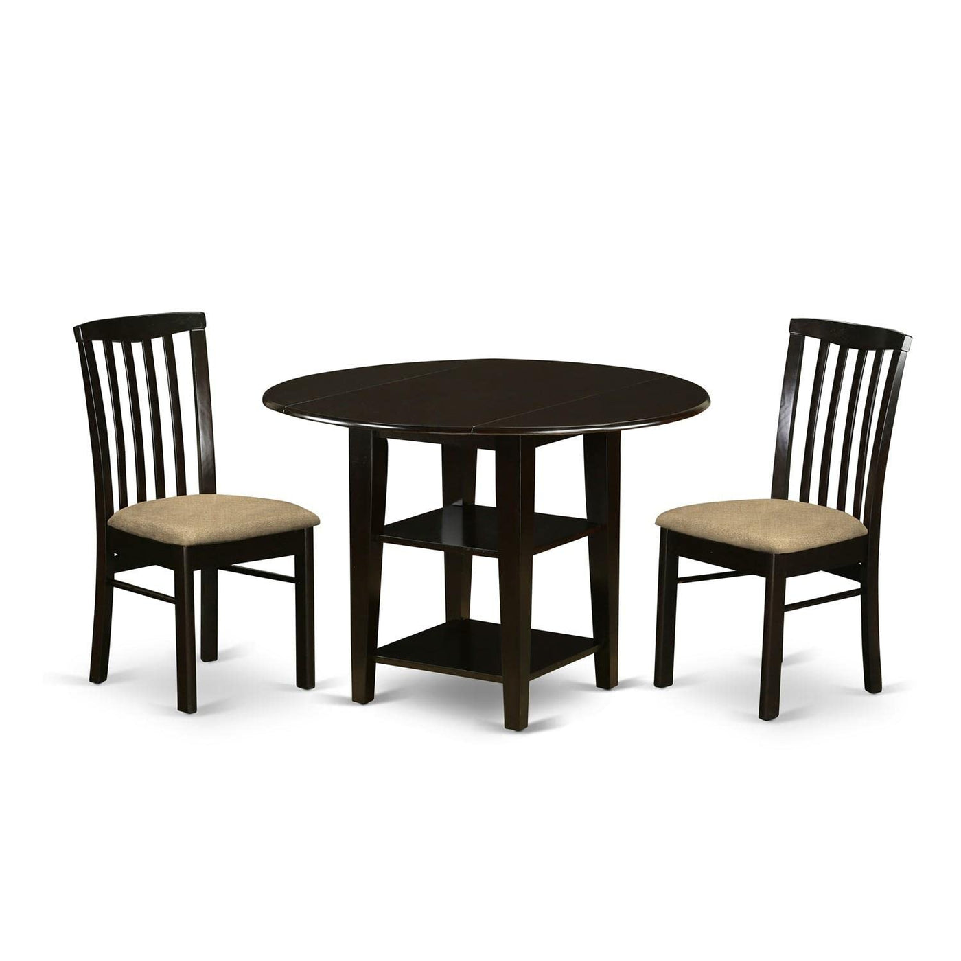 East West Furniture Sudbury Wood 3-Piece Dining Set In Cappuccino Suhl3-Cap-C