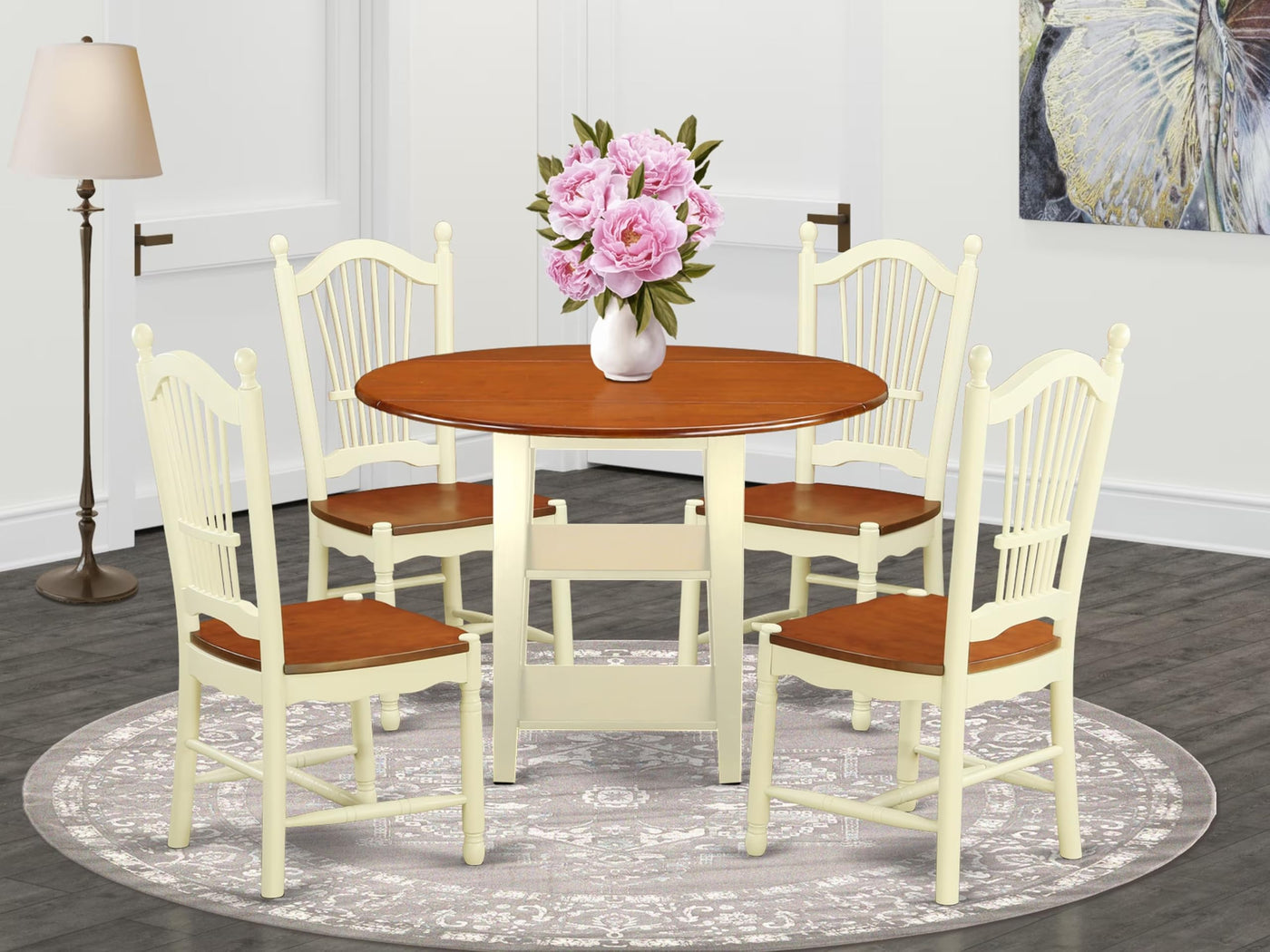 East West Furniture Sudo5-Bmk-W 5 Piece Dining Room Table Set Includes A Round Kitchen Table With Dropleaf & Shelves And 4 Dining Chairs, 42X42 Inch, Buttermilk & Cherry