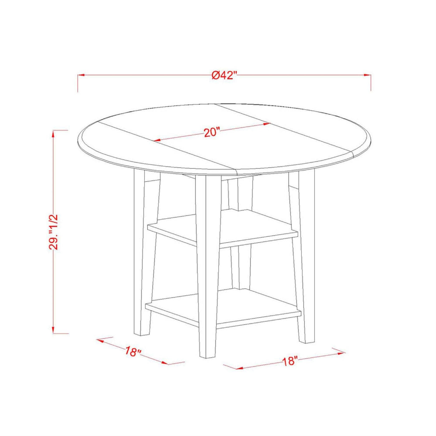 EAST WEST FURNITURE - SUPL3-BMK-W - KITCHEN DINING TABLE SETThis 3-piece kitchen set comprises 2 dining chairs and a modern table. The Drop Leaf Round dining table features a cherry tabletop and Buttermilk legs, matching the cherry seats and Buttermilk legs of the dining chairs for a stylish twist on traditional designs. These kitchen chairs seamlessly fit any decor, with various available colors adding sophistication. They feature wooden seats, slatted backs, while the wooden table includes 2 shelves, a drop leaf round top, and 4 legs. Crafted from premium Asian rubberwood, our kitchen dining table set guarantees exceptional durability, free from heat-treated wood, plywood, veneer, or laminated materials, ensuring longevity. With its versatile style, this set effortlessly complements any home decor, promising enduring elegance. Highly experienced carpenters created these dining room chairs and the wooden table, achieving a smooth, high-end finish. Ideal for any dining area, this kitchen table set suits casual home gatherings or intimate occasions. Assembly is made easy with provided instructions, and our top priority is customer satisfaction, so buy with confidence!PRODUCT FEATURES: Frame Material: Asian Wood Frame Color: Buttermilk and Cherry Table Top Style: Round Chair Back Style: Slatted Seat Material: Wood Chair Dimensions: Length: 22; Width: 18; Height: 37. Table Dimensions: Length: 42; Width: 42; Height: 29.5.Included in the Package: 2 Modern Dining Chairs and a Wooden Kitchen Table.