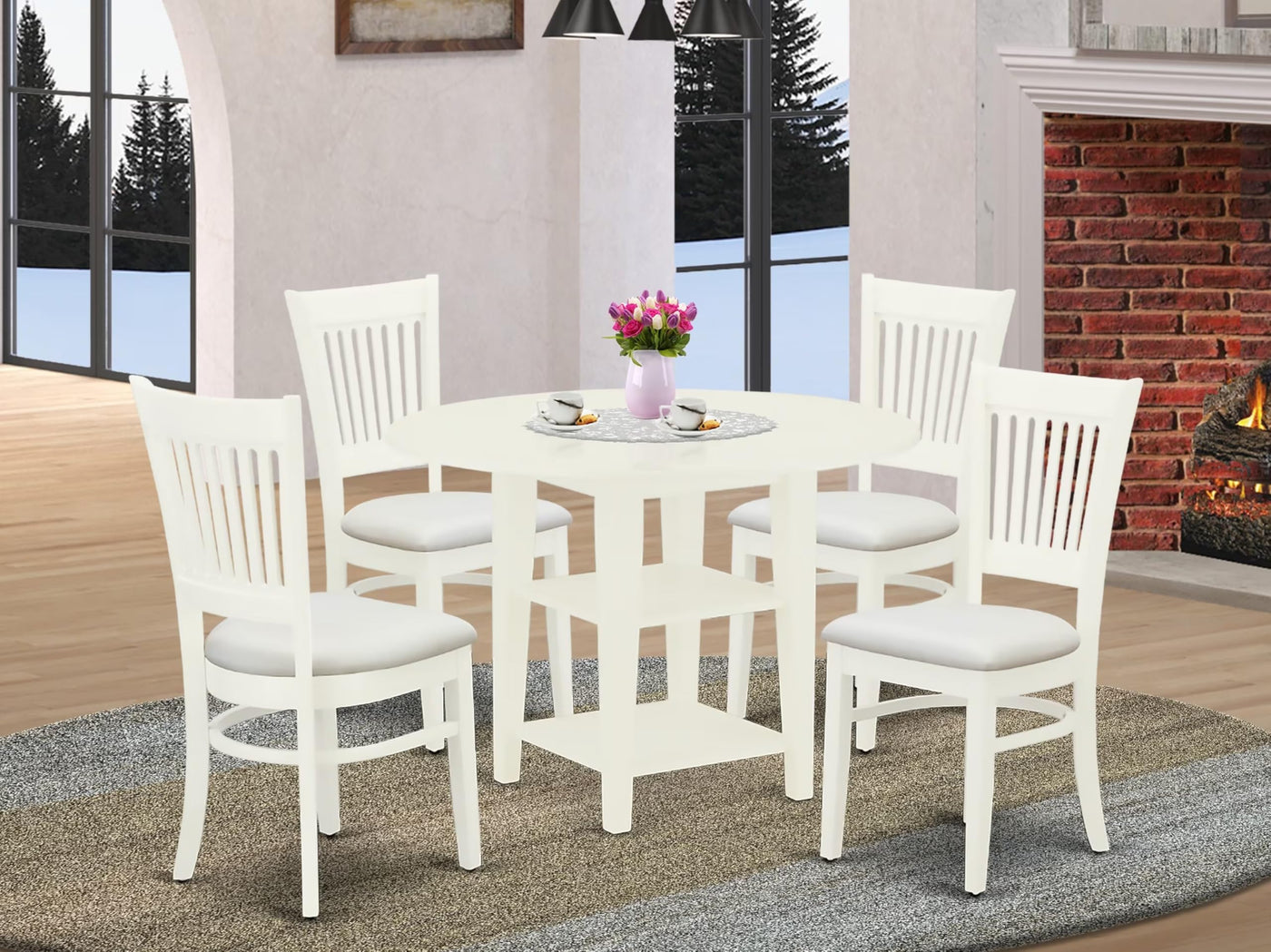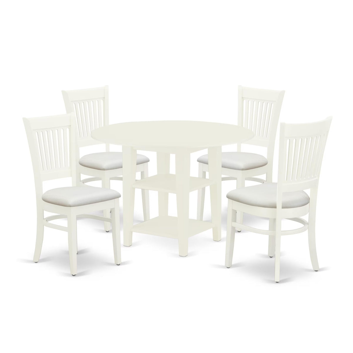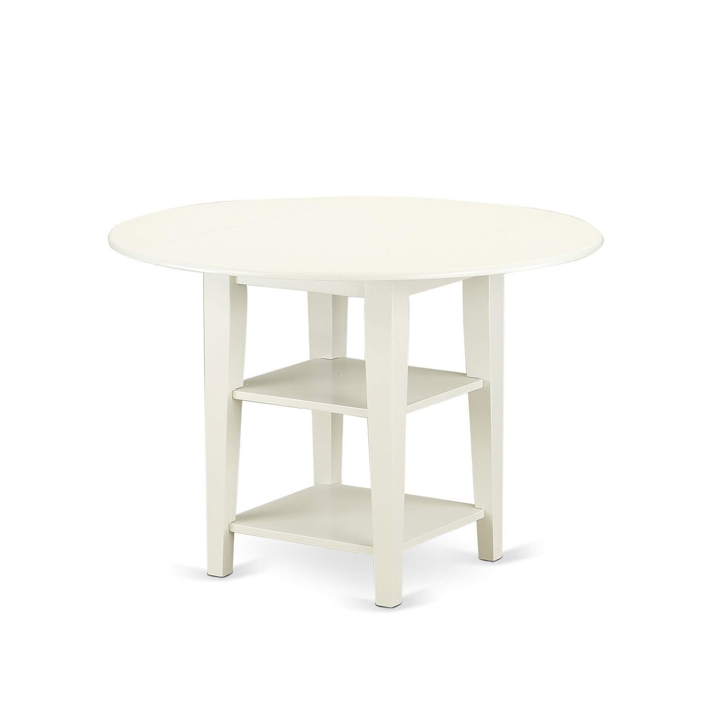 East West Furniture Suva5-Lwh-C 5 Piece Dining Table Set For 4 Includes A Round Kitchen Table With Dropleaf & Shelves And 4 Linen Fabric Kitchen Dining Chairs, 42X42 Inch, Linen White