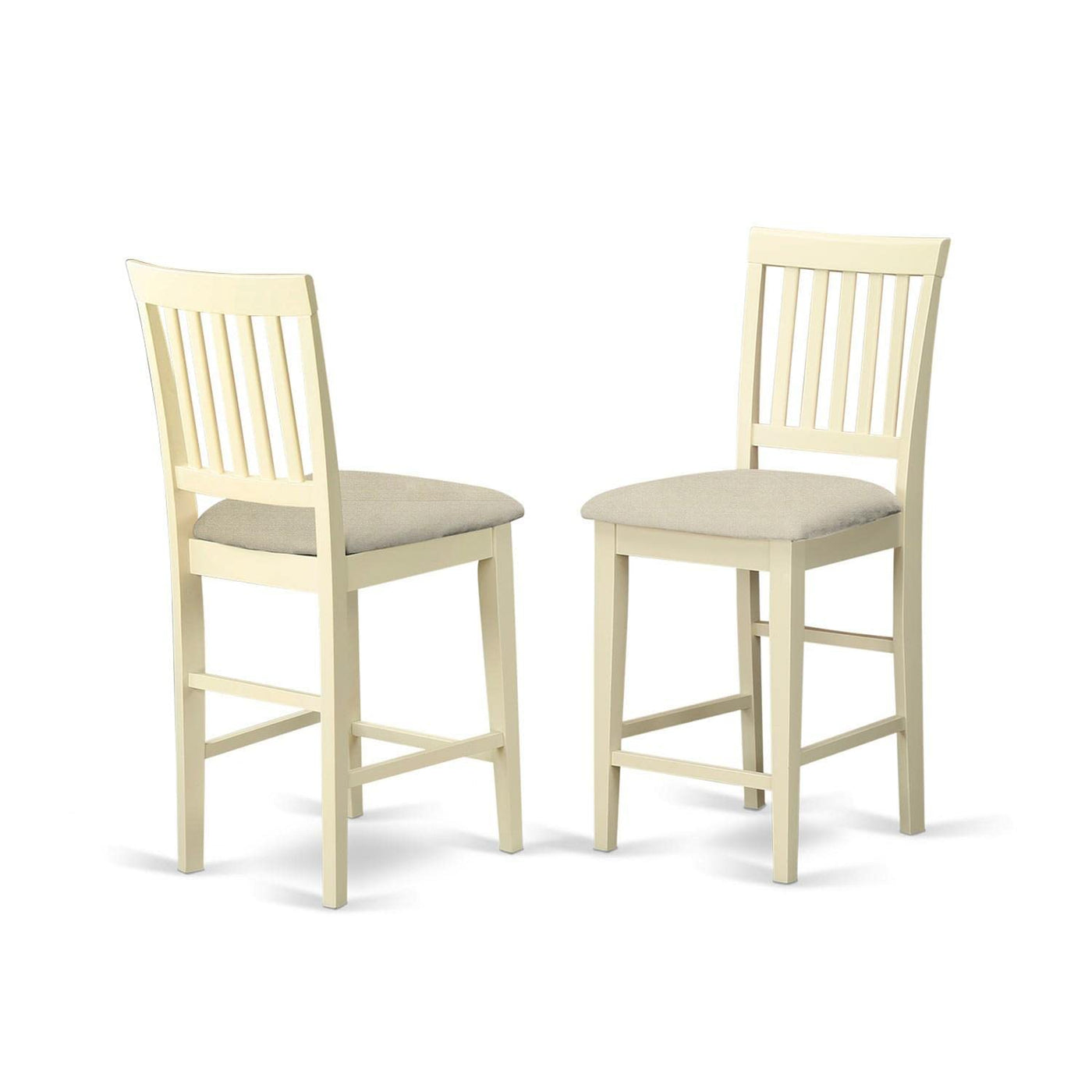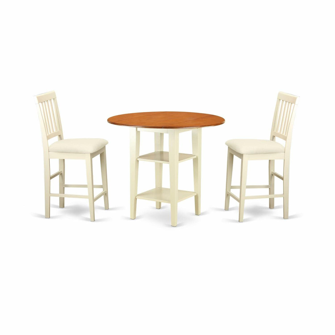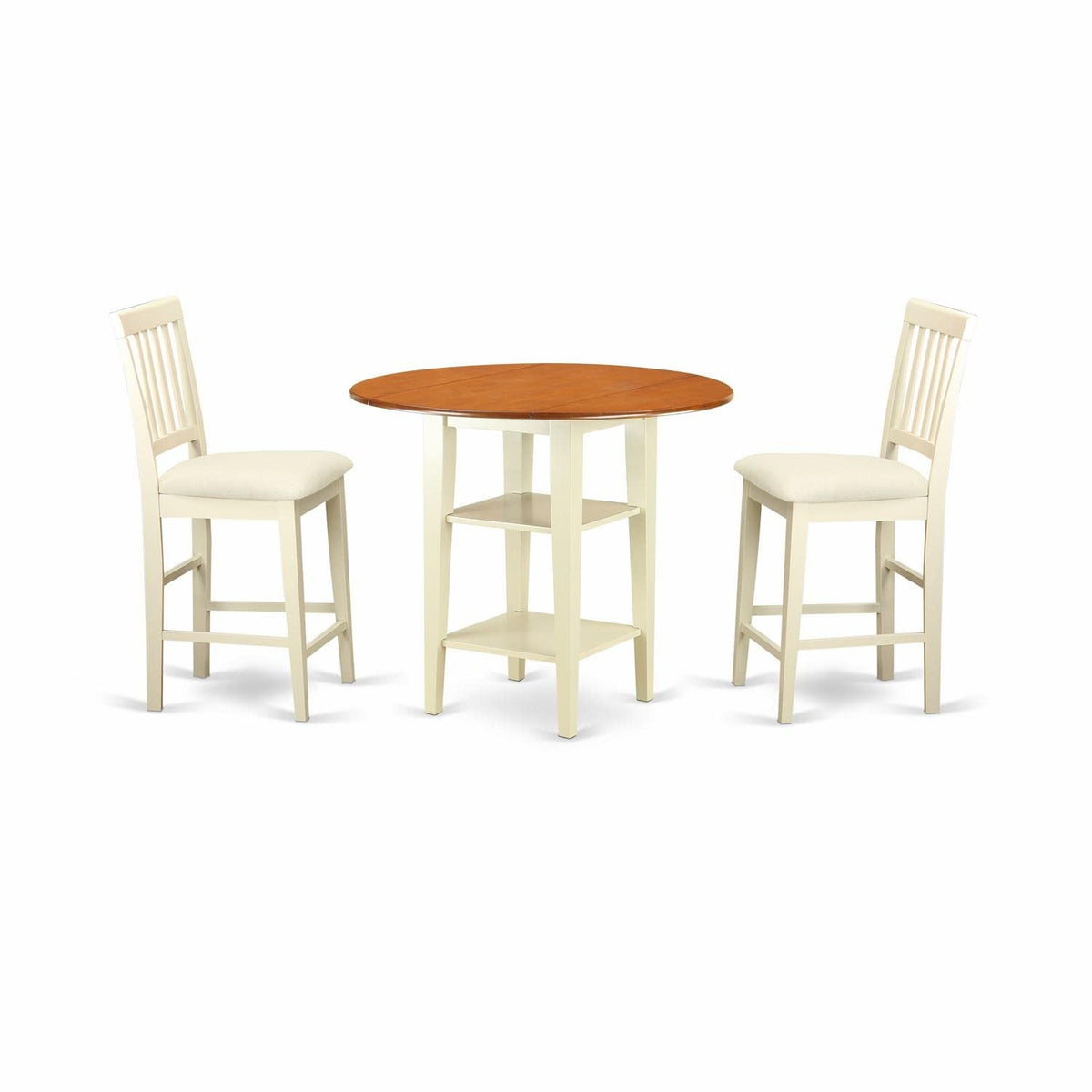 East West Furniture SUVN5H-BMK-W 5 Piece Kitchen Counter Height Dining Set Includes a Round Wooden Table with Dropleaf & Shelves and 4 Wood Seat Chairs, 42x42 Inch, Buttermilk & Cherry