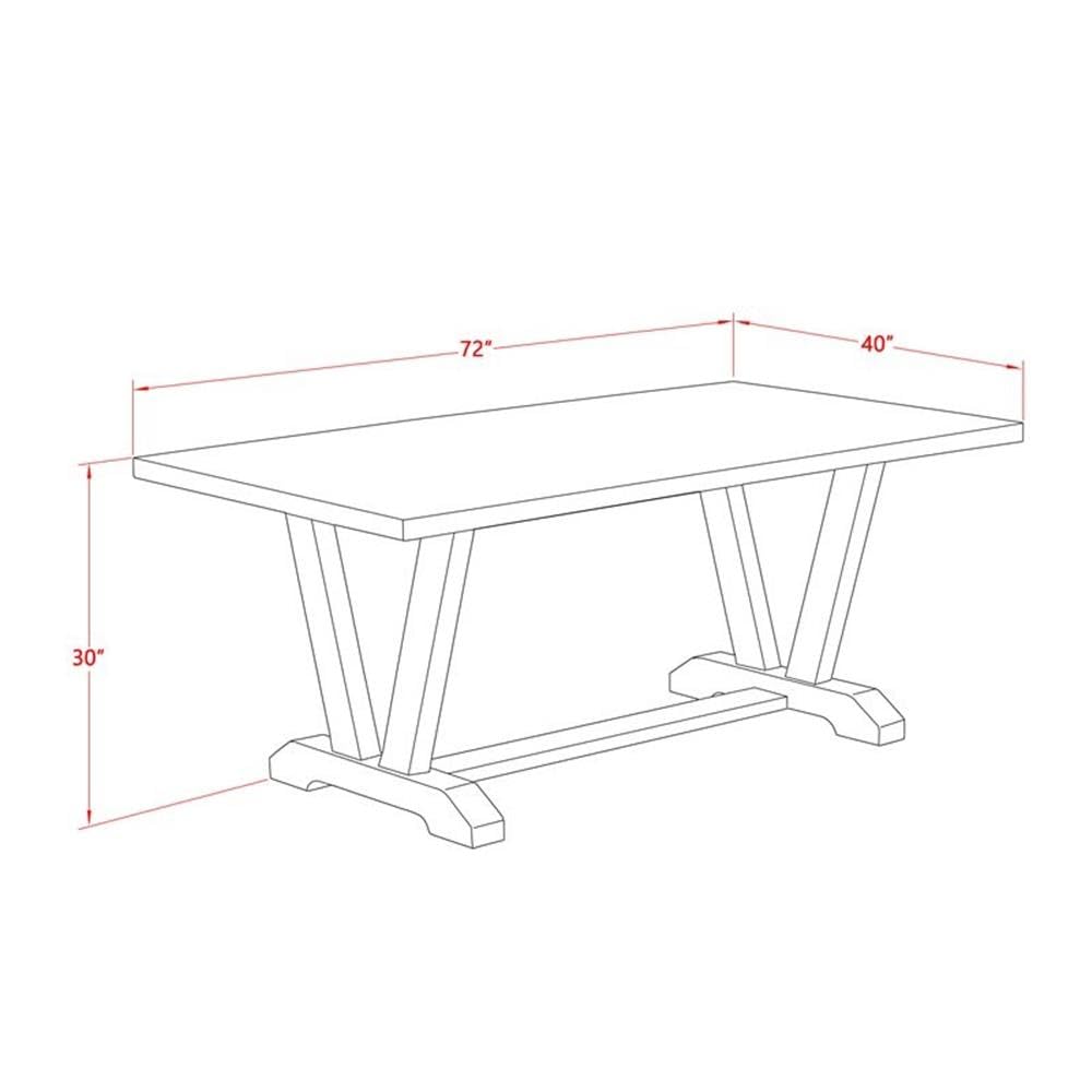 EAST WEST FURNITURE - V677VE650-9 - 9 PC DINING ROOM TABLE SETOur dining set adds a touch of elegance to any dining room that you and your family will absolutely enjoy. The elegant 9 Piece modern dining set contains a modern table and 8 upholstered dining chairs. This rectangular wooden table top is offered in a Distressed Jacobean finish. In addition, the upholstered dining chair in a Dark Gotham Grey Linen Fabric enhances the elegance of any home. Ideal for dinette, kitchen and dining areas, this multi-functional dining room table set seats up to 8 people, perfect for families to enjoy mealtimes together. A great addition to your dining area and a perfect ensemble that will strike your guests with its best impression. We have created these Dark Gotham Grey finish modern chairs and wood kitchen table with the help of highly experienced carpenters, who generate a smooth and high-end finish to this dinner table set. Modern dining chairs of the kitchen table set can be moved under the modern kitchen table when you finish your meal, which our table set largely helps you save room space. Designed with easy and fast assembly in mind, each set comes conveniently flat packed with easy-to-follow instructions and all necessary tools included. Our top quality dining room set is perfect for you and your dining area as well as the kitchen area. Our kitchen table set is quite easy to clean and always provides a good appeal. The dining set adds a refined touch to even your most casual family dinners. Keep Enjoy With East West Furniture!MID CENTURY MODERN DINING SET FEATURES:? Wood Material: Rubberwood? Fabric Material: Linen Fabric? Modern Kitchen Table Top Color: Distressed Jacobean? Dining Table Legs Color: Wire Brushed Black? Modern Chair Fabric Color: Dark Gotham Grey? Upholstered Dining Chair Legs Color: Black? Dining Chairs Back Style: High Back? Table Dimensions: Length: 72; Width: 40; Height: 30.? Chair Dimensio