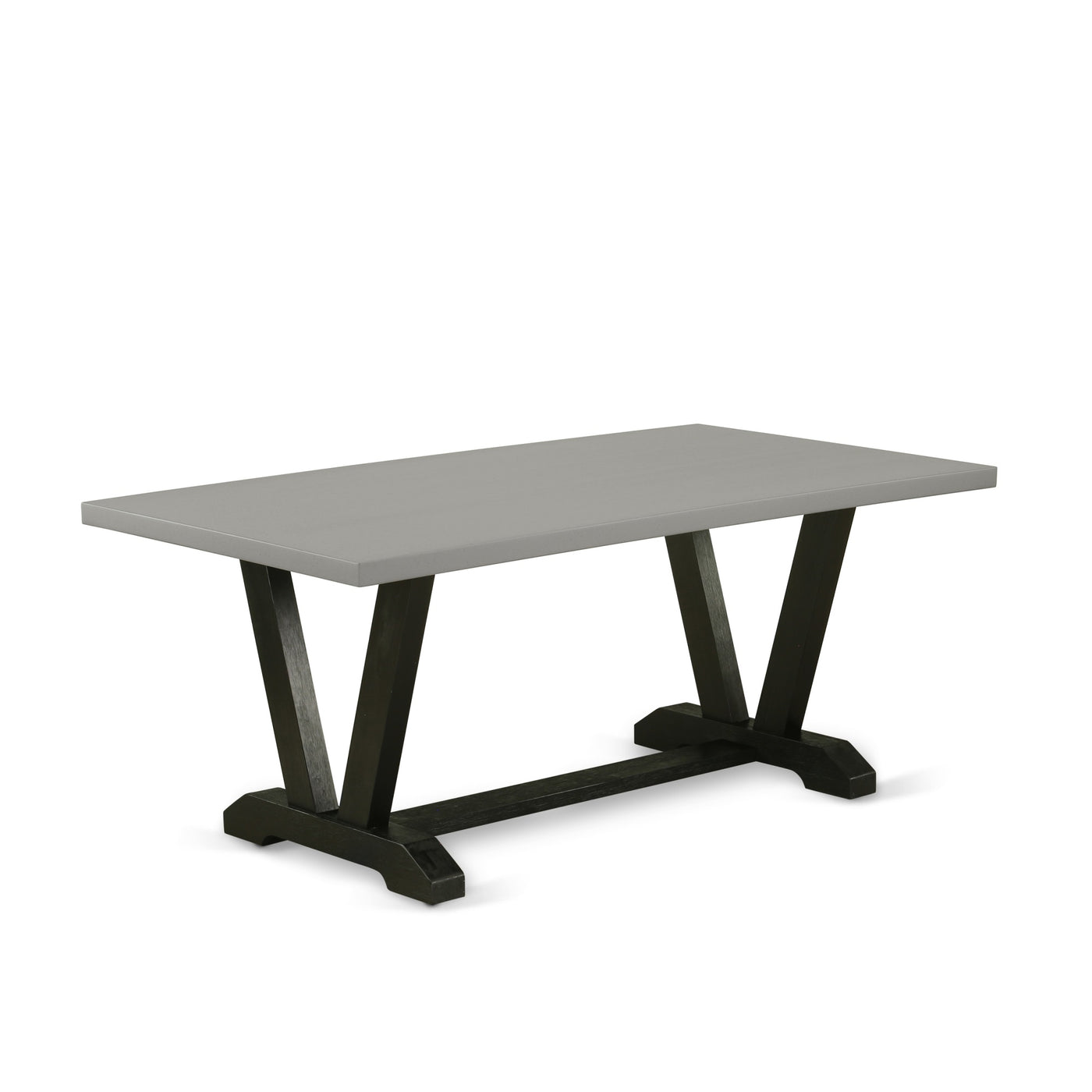 V697SI121-9 East West Furniture V697SI121-9 9-Piece Modern Dining Table Set- 8 Kitchen Chairs with Blue Linen Fabric Seat and Button Tufted Chair Back - Rectangular Table Top & Wooden Legs - Cement and Black Finish, EAST WEST FURNITURE 9-PIECE MODERN DINING TABLE SET- 8 FABULOUS PARSON CHAIRS AND 1 RECTANGULAR TABLEThis 9-pc dining table set includes 8 kitchen parson chairs and 1 kitchen table. These parson chairs have a Linen Fabric seat, Button Tufted Chair Back, and the kitchen table is consists of a rectangular top and Wooden Legs. The dining padded chairs seat, the chair back is constructed from Linen Fabric in a Blue color upholstered dining chairs hardwood structure, and the Linen Fabric seat is very easy to clean. You can clean dust easily and often to save time by using a damp cloth. These kitchen parson chairs and the dining room table is the excellent choice for your dining room or kitchen. The quick structure of the parson chairs and the dining room table as well as screws of the same size that allow fast and simple build.FEATURES:Dining Table Set Material: Asian HardwoodSeating Material: Linen FabricWooden Dining Table Top Color: CementDining Room Table Legs Color: Wire brushed BlackDining Room Chairs Legs Color: BlackDining Chairs Fabric Color: BlueKitchen Dining Table Dimensions: Length 72; Width 40; Height 30.Kitchen Parson Chairs Dimensions: Length 21.5; Width 19.5; Height 35.5.Included in the Package: The Wonderful Kitchen Table and 8 Lovely Parson Dining Chairs.