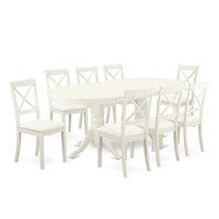 East West Furniture Vabo9-Lwh-Lc 9 Piece Dining Set Includes An Oval Dining Room Table With Butterfly Leaf And 8 Faux Leather Upholstered Kitchen Chairs, 40X76 Inch, Linen White