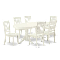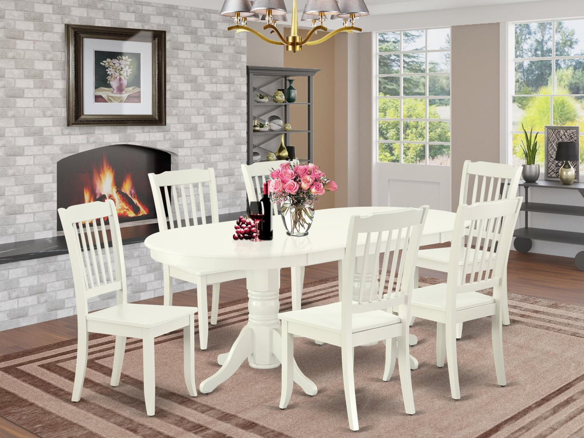East West Furniture Vada7-Lwh-W 7 Piece Dining Table Set Consist Of An Oval Dining Room Table With Butterfly Leaf And 6 Wooden Seat Chairs, 40X76 Inch, Linen White