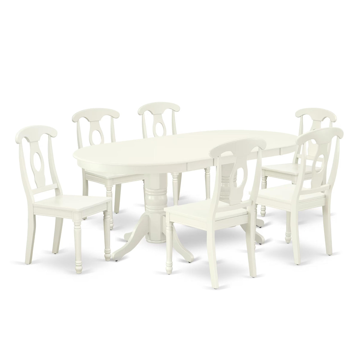 East West Furniture Vake7-Lwh-W 7 Piece Dining Set Consist Of An Oval Dining Table With Butterfly Leaf And 6 Kitchen Chairs, 40X76 Inch, Linen White