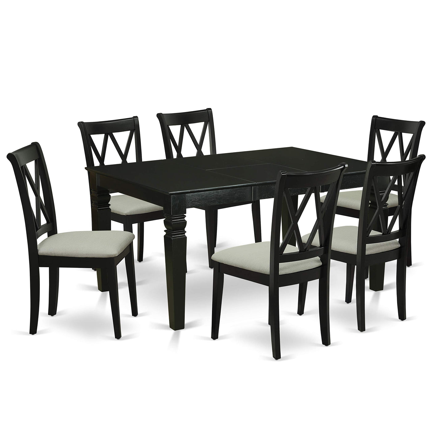 East West Furniture - Wecl7-Blk-C - 7-Piece Kitchen Dining Table Setfurnish Your Dining Room With Ease Using This Essential 7-Piece Kitchen Set, Comprising A Dining Table And 6 Kitchen Chairs. It'S Perfect For Both Casual Weekday Meals And Family Gatherings. The Sleek Black Color Lends A Relaxing And Welcoming Ambiance To Any Dining Space, While The Robust Square-Rectangular Hybrid Table Stands Firmly On Four Straight, Solid Wooden Legs, Providing Ample Seating For 4-8 People To Enjoy Their Meals Comfortably. You Can Easily Expand The Table With The Extendable Leaf, Making It Suitable For Personal Occasions Or Large Gatherings. Crafted From Rubberwood, This Beautiful Set Is Ideally Placed In A Dining Room Or Kitchen Area. The Slender Double X-Back Dining Chairs Offer Both Style And Comfort, Featuring Linen Fabric Seats In An Elegant Black Finish, Enhancing Your Dining Experience. The Chairs Are Designed To Provide Excellent Spinal Support, Reducing The Risk Of Back Pain. The Standard Shape, Size, And Design Of This Contemporary, Budget-Friendly, Durable, And Comfortable Kitchen Set Significantly Enhance The Attractiveness Of Your Dining Area. If You'Re Seeking An Enjoyable Dining Experience With Family Or Friends, This Set Is An Excellent Choice.Product Features: Material: Asian Hardwood Table Color: Black Fabric: Linen Fabric Cushion Material: Foam Fabric Color: Cream Chair Finish: Black Chair Dimensions: Length: 22; Width: 18; Height: 37. Table Dimensions: Length: 60/42; Width: 42; Height: 30.Includes: 1 Rectangular Table And 6 Kitchen Chairs.
