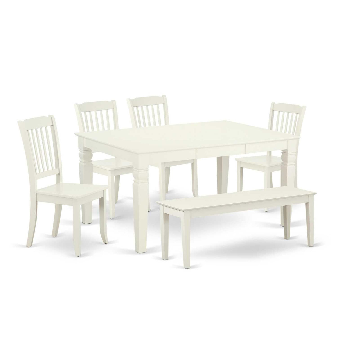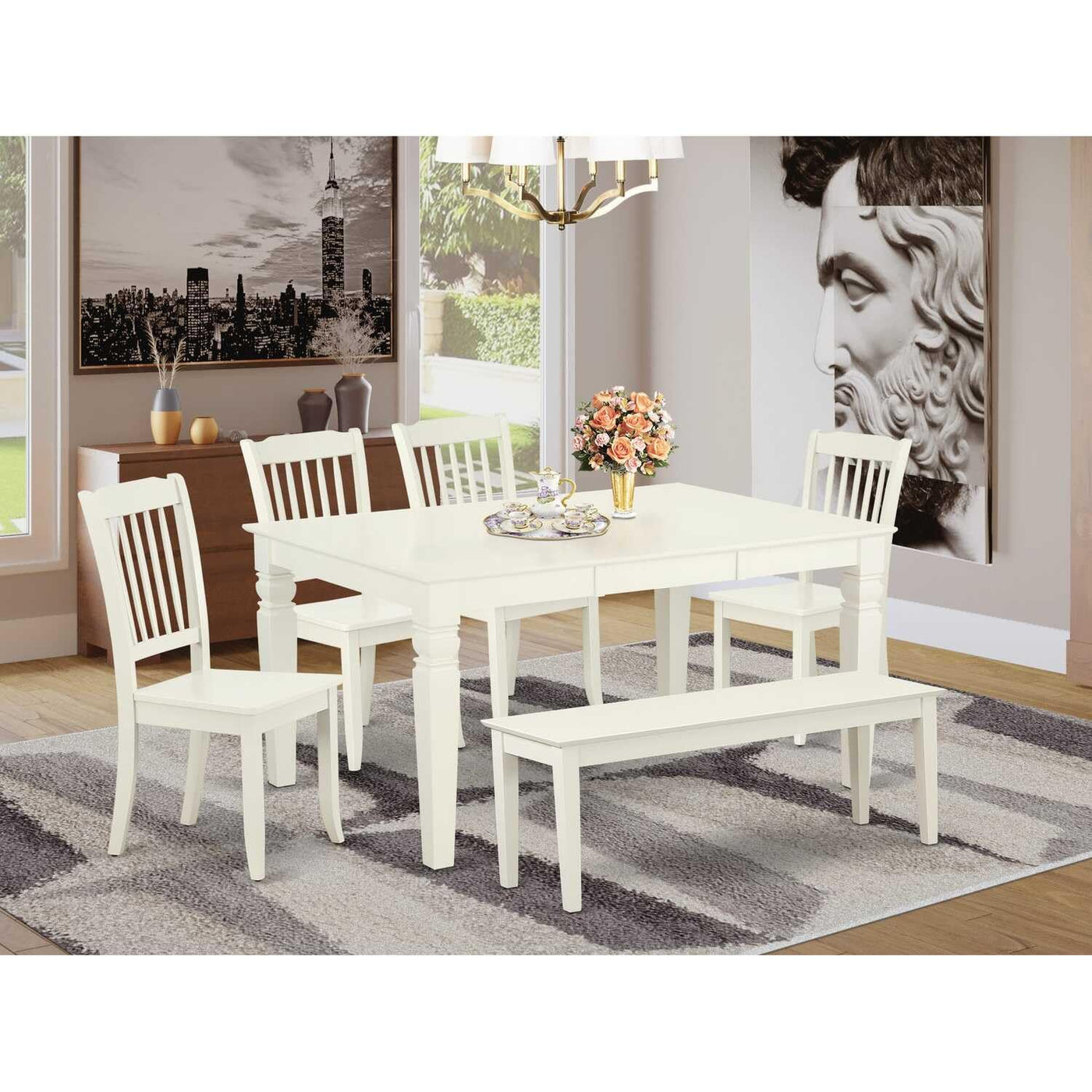 East West Furniture WEDA6-LWH-W 6Pc Rectangular 42/60" Dining Table with 18 in Leaf and Four Wood Seat Dining Chairs Plus 1 Bench