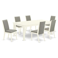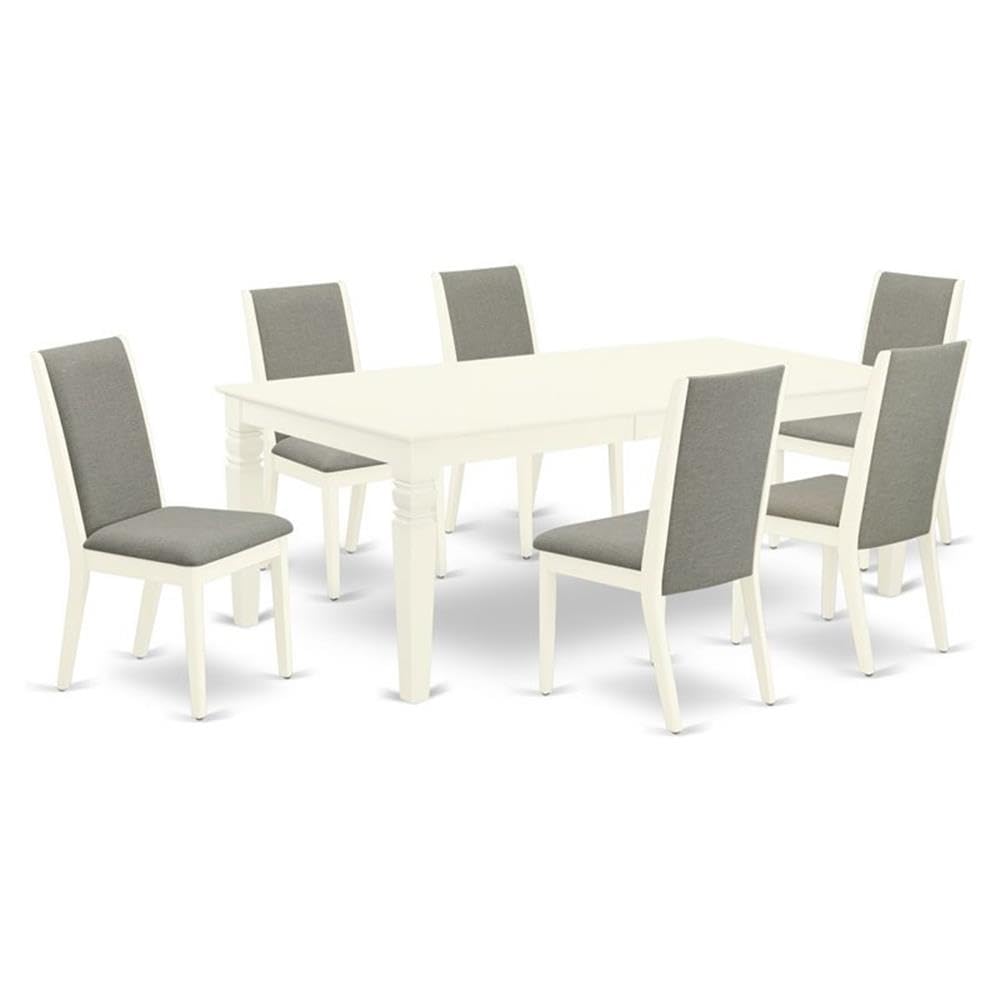 East West Furniture - Wela7-Whi-06 - 7-Piece Dining Setthis Kitchen Table Set Comprises 6 Exquisite Dining Chairs And A Superb 4-Legged Breakfast Table. The Contemporary Dining Set Features A Solid Wood Dinner Table In A Linen White Finish And Is Complemented By Stylish Shitake Upholstered Dining Chairs With A Comfortable High Backrest, Adding A Touch Of Elegance To Your Dining Space And Elevating The Overall Aesthetic Of Your Exceptional Dining Room. The Exceptional Quality Of Our Dining Chairs Ensures That Our Valued Customers Can Enjoy A Relaxing Dining Experience. The Breakfast Table Is Crafted From Top-Notch Rubber Wood, Capable Of Supporting Up To 300 Pounds. Our Parson Dining Chairs Feature A Wooden Frame And A Luxurious Seat Made Of High-Quality Foam, Upholstered In Linen Fabric, Ensuring A Comfortable Seating Experience When Dining With Family Or Friends. The Premium Color Options We Offer Enhance The Aesthetics Of Your Living Or Dining Area, Providing A Magnificent Appearance. Dining Table Set Takes Pride In Designing Modern Furniture With Easy-To-Assemble Components, Keeping Innovation And Simplicity In Mind. Our High-Class Kitchen Table Set Is The Perfect Addition To Your Dining Area Or Kitchen, Making It Suitable For Casual Home Gatherings And Parties.Product Features: Wood Color: Linen White Fabric: Linen Fabric Fabric Color: Shitake Kitchen Table Dimension: Length: 60/42; Width: 42; Height: 30. Parson Chairs Dimension: Length: 22; Width: 20; Height: 39.Package Include: 6 Dining Chairs And A Dinner Table.