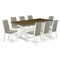 East West Furniture - X077La206-9 - 9-Piece Kitchen Setthis Rectangular Dining Room Table Set Includes 8 Awesome Dining Chairs And A Gorgeous Modern Dining Table. This Kitchen Rectangular Table Is Offered In An Elegant Wire Brushed Linen White Finish. In Addition, The Modern Dining Chairs In A Shitake Linen Fabric To Enhance The Elegance Of Any Kitchen Or Dining Area. Our Modern Dining Table Set Delivers Great Durability Because This Kitchen Rectangular Table Is Built From High Quality Asian Wood Which Can Bear The Weight Of 300 Lbs. We Have Created These Modern Dining Chairs And Rectangular Dining Table With The Help Of Highly Experienced Carpenters, Who Generate A Smooth And High-End Finish To This Modern Dining Table Set. We Try To Offer Innovative As Well As Easy To Assemble Products. Our High-Quality Dining Table Set Is Perfect For You And Your Beautiful Dining Area As Well As The Kitchen Area. You Can Use It For Casual Home Parties Or For Intimated Gatherings. Keep Enjoying East West Modern Furniture!Product Features: Color Of Padded Parson Chairs Seat: Shitake Color Of Rectangular Dining Table Top: Distressed Jacobean Color Of Dining Room Table Base: Wire Brushed Linen White Kitchen Parson Chairs Legs Color: Wire Brushed Linen White Dining Table Dimensions: Length: 72; Width: 40; Height: 30. Parson Dining Room Chairs Dimensions: Length: 22; Width: 20; Height: 39Package Include: 8 Modern Dining Chairs And A Rectangular Dining Table.