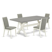 East West Furniture - X097La206-5 - 5-Piece Dining Table Setthis Dining Set Includes 4 Wonderful Dining Room Chairs And A Wonderful Dining Table. This Rectangular Table Is Offered In An Elegant Wire Brushed Off-White Finish. In Addition, The Kitchen Chairs In A Shitake Linen Fabric To Enhance The Elegance Of Any Kitchen Or Dining Room. Our Kitchen Set Provides Great Durability Because This Dining Table Is Built From High Quality Asian Wood Which Can Bear The Weight Of 300 Lbs. We Have Created These Upholstered Dining Chairs And Dining Table With The Help Of Highly Experienced Carpenters, Who Generate A Smooth And High-End Finish To This Dining Room Set. We Try To Offer Innovative As Well As Easy To Assemble Products. Our High-Quality Dining Set Is Perfect For You And Your Beautiful Dining Room As Well As The Kitchen Area. You Can Use It For Casual Home Parties Or For Intimated Gatherings. Keep Enjoying East West Modern Furniture!Product Features: Color Of Padded Parson Chairs Seat: Shitake Color Of Dining Table Top: Cement Color Of Dining Table Base: Wire Brushed Off-White Dining Chairs Legs Color: Wire Brushed Off-White Dining Room Table Dimensions: Length: 72; Width: 40; Height: 30 Parson Dining Chairs Dimensions: Length: 22; Width: 20; Height: 39Package Include: 4 Modern Dining Chairs And A Dining Table.