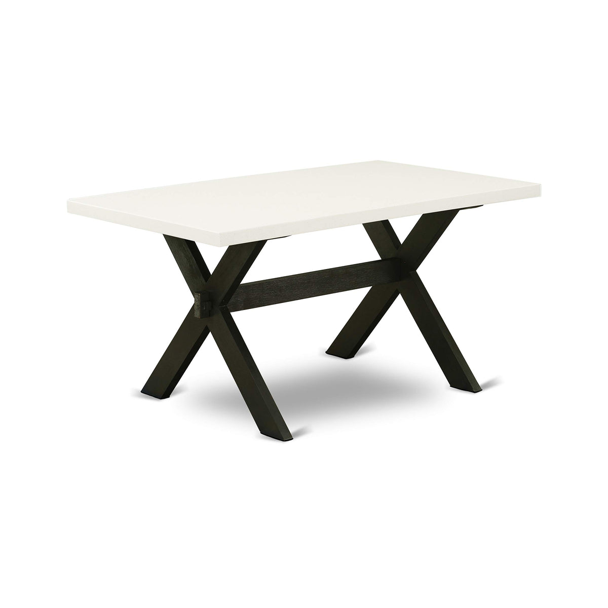 East West Furniture X627EL635-7 7 Piece Dining Table Set Consist of a Rectangle Dining Room Table with X-Legs and 6 Doeskin Linen Fabric Upholstered Chairs, 40x72 Inch, Multi-Color