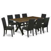 East West Furniture X677Dr124-9 9 Piece Dining Room Table Set Includes A Rectangle Kitchen Table With X-Legs And 8 Black Color Linen Fabric Parson Dining Chairs, 40X72 Inch, Multi-Color