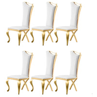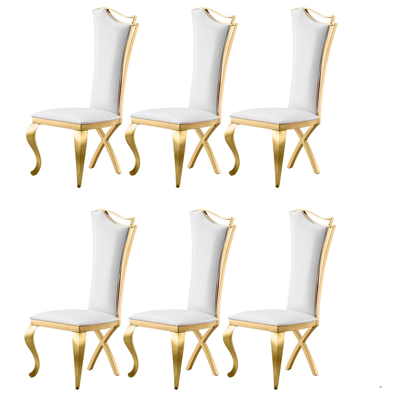 Elegant Dining Chairs Set Of 6, Modern Faux Leather Dining Room Chair W/Unique High Back Golden Stainess Legs,White Luxury Upholstered Accent Kitchen Chairs For Kitchen, Dining, Bedroom, Living Room