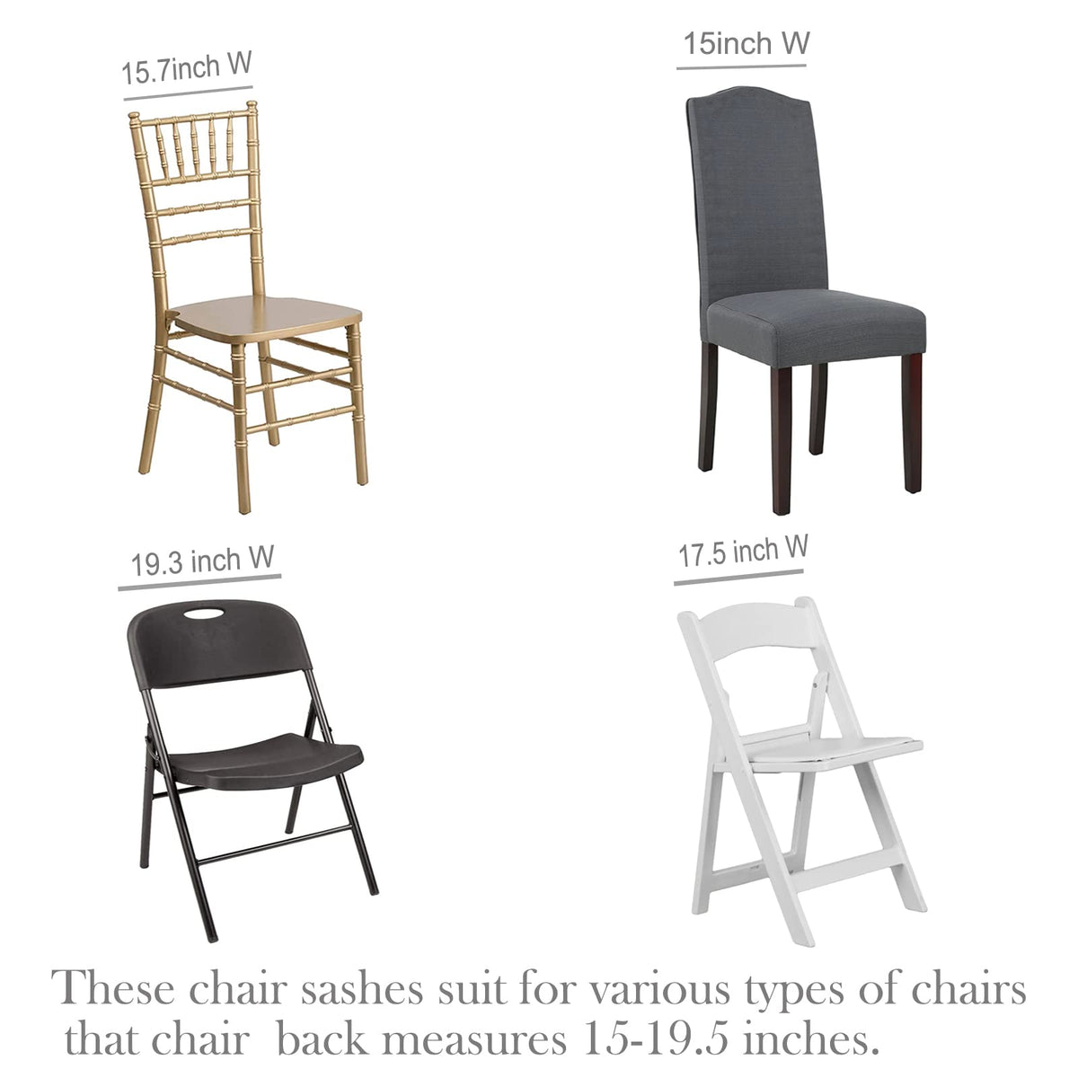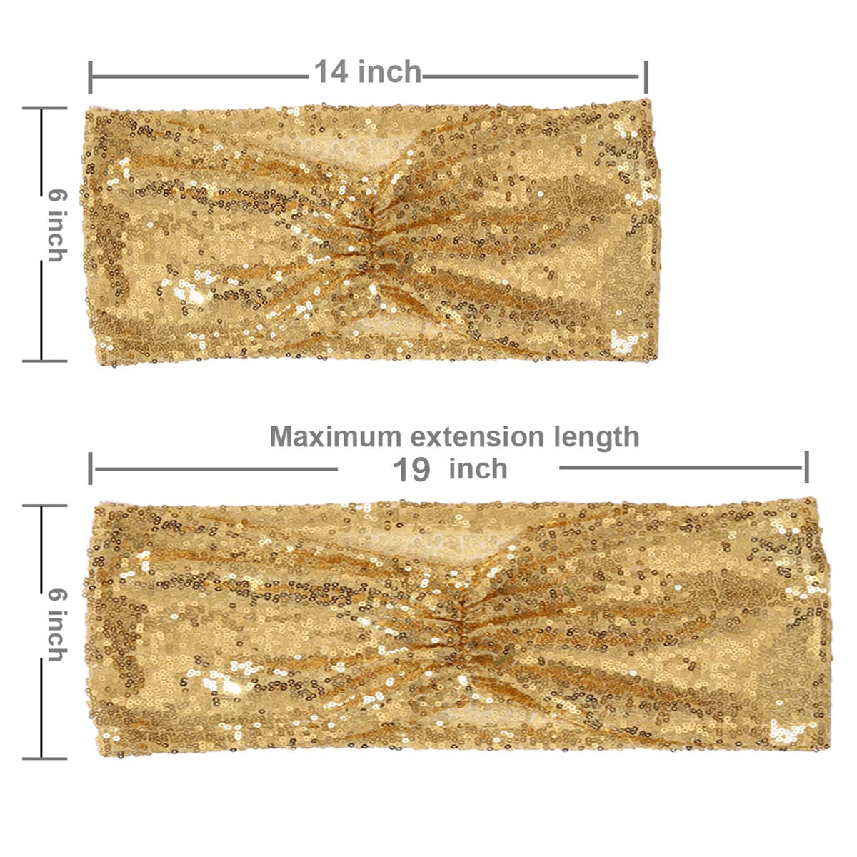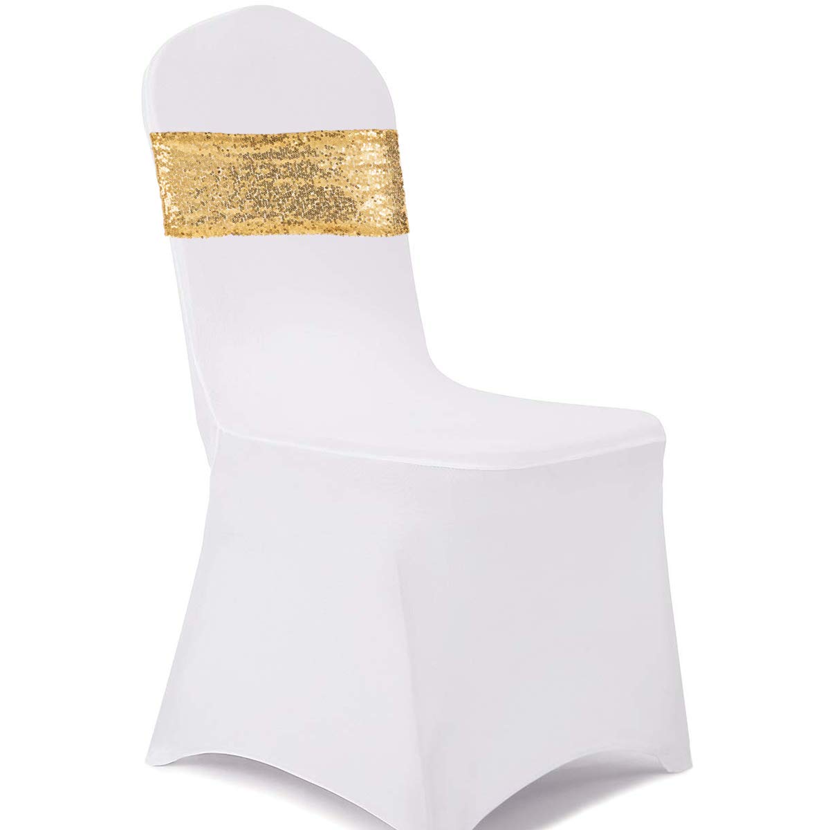Both Side Is Made Of Sequin Fabric. One Side Is Made Into The Bow-Knot Shape. | Strech Sequin Fabric Design, Super Easy To Use. Well Hemmed Edges Make It Durable. | Shiny Glitter Look Will Add An Elegant And Festive Accent To Your Banquet White Chair. They Can Get Your Chairs Out Of Dullness. | These Chair Sashes Are Widely Used In Wedding, Baby Shower, Birthday Party Ceremony Reception Graduation Holidays Events. They Are Great Glitter Decorations For Your Events. | Normal Size: 5.7X13.4 Inches, Suitable For Width Of Chairs: 11.8 - 19.7 Inch. Package Include 10Pcs Chair Sashes.