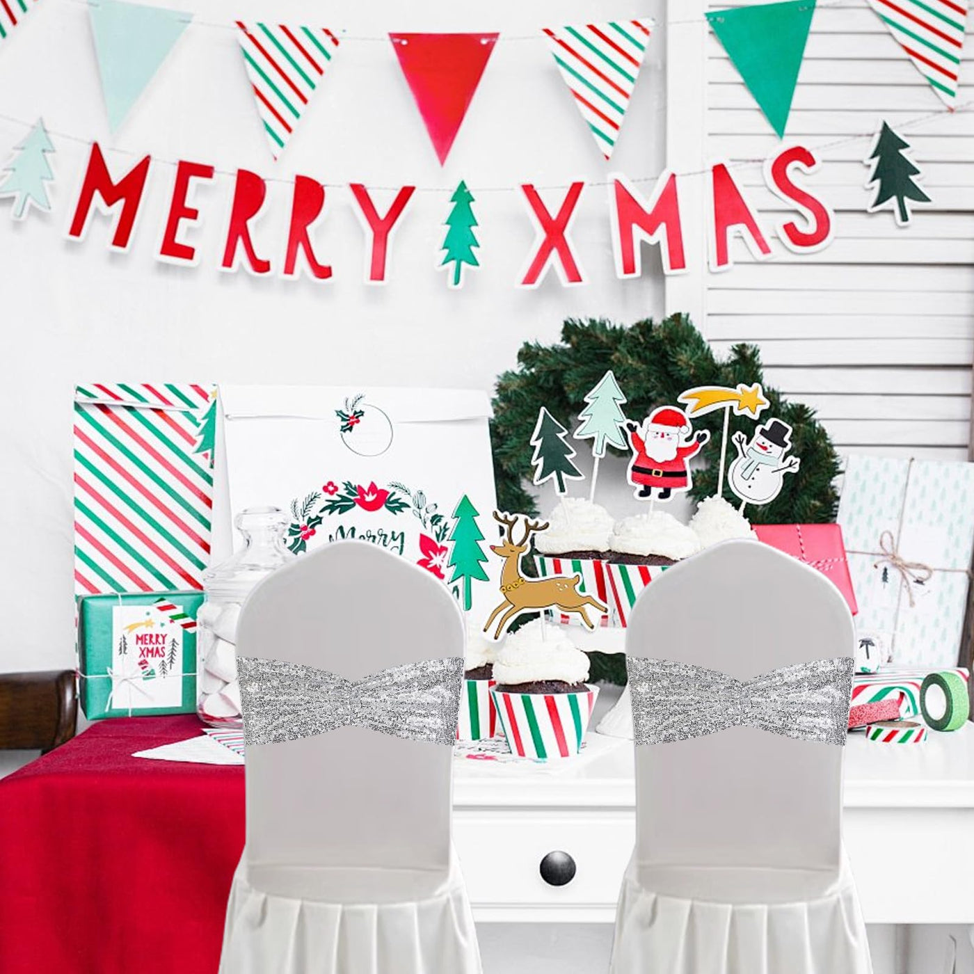 Eternal Beauty Set Of 10 Sequin Chair Sashes Silver Chair Sashes For Wedding Hotel Party Banquet Chairs Decorations