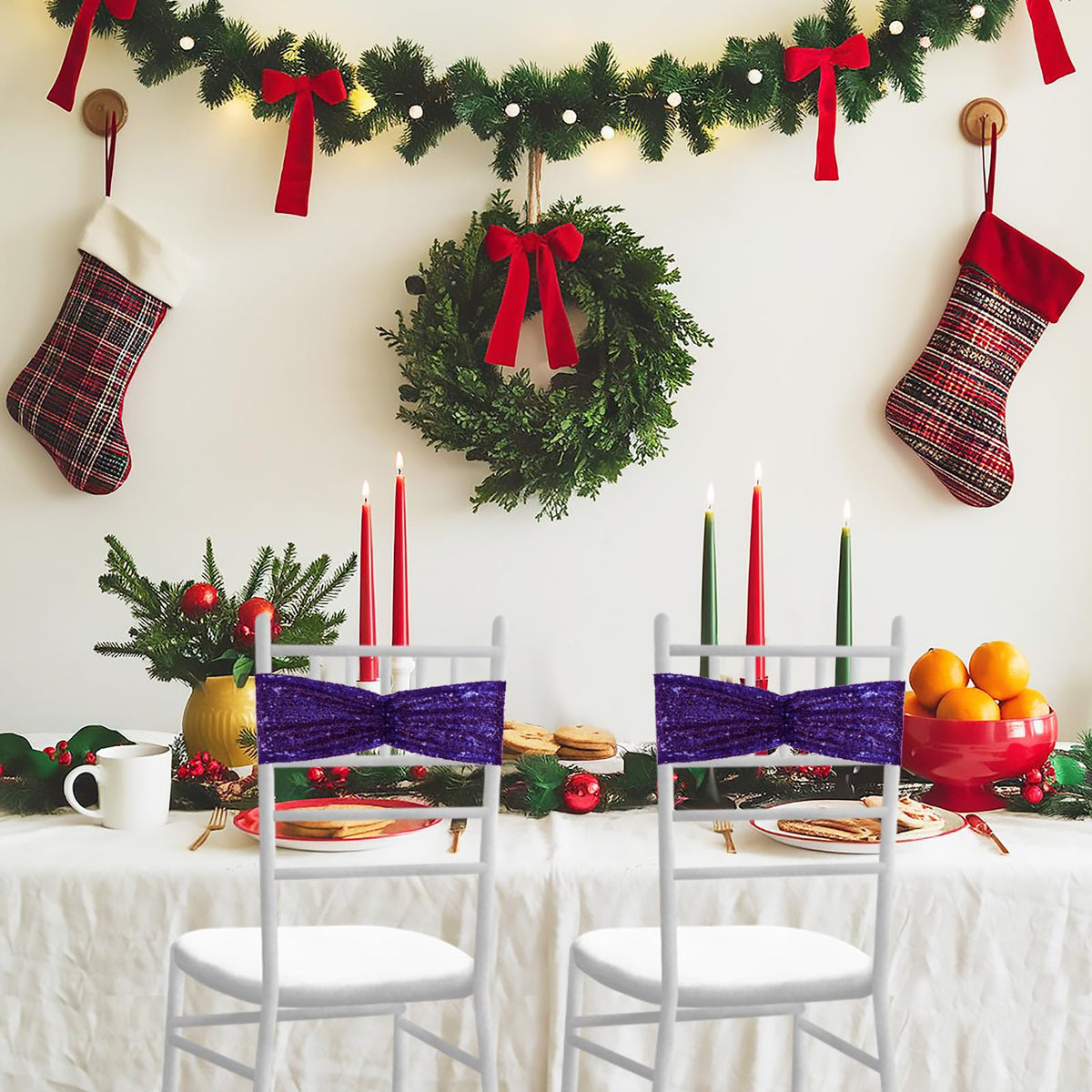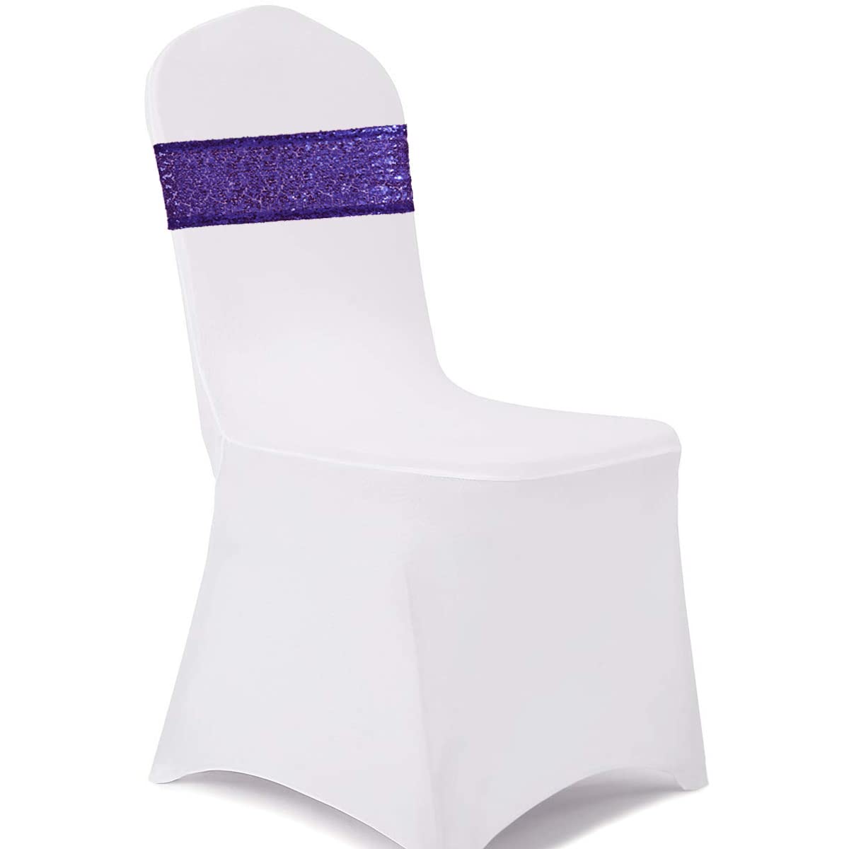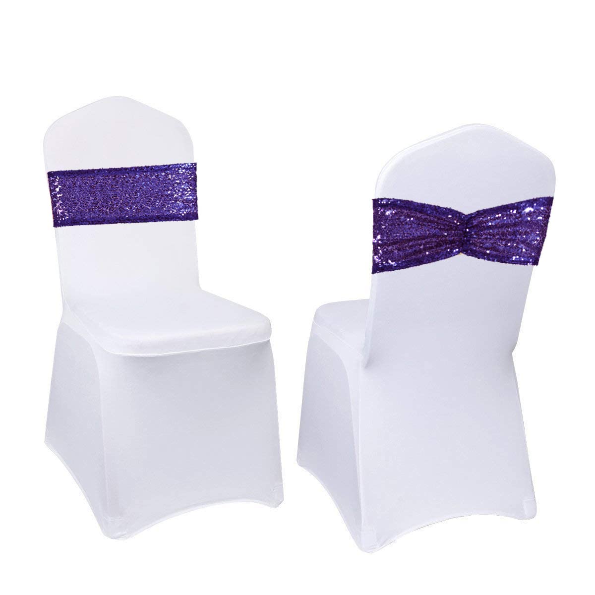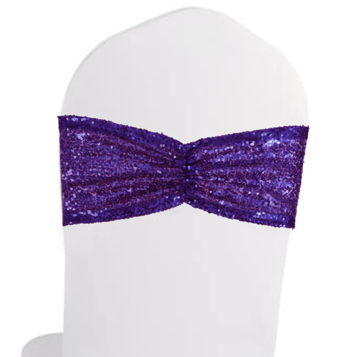 Eternal Beauty Set Of 20 Sequin Chair Sashes Purple Chair Sashes For Wedding Hotel Party Banquet Chairs Decorations
