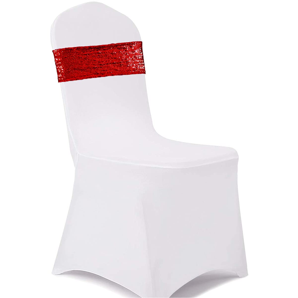Both Side Is Made Of Sequin Fabric. One Side Is Made Into The Bow-Knot Shape. | Strech Sequin Fabric Design, Super Easy To Use. Well Hemmed Edges Make It Durable. | Shiny Glitter Look Will Add An Elegant And Festive Accent To Your Banquet White Chair. They Can Get Your Chairs Out Of Dullness. | These Chair Sashes Are Widely Used In Wedding, Baby Shower, Birthday Party Ceremony Reception Graduation Holidays Events. They Are Great Glitter Decorations For Your Events. | Normal Size: 5.7X13.4 Inches, Suitable For Width Of Chairs: 11.8 - 19.7 Inch. Package Include 20Pcs Chair Sashes.