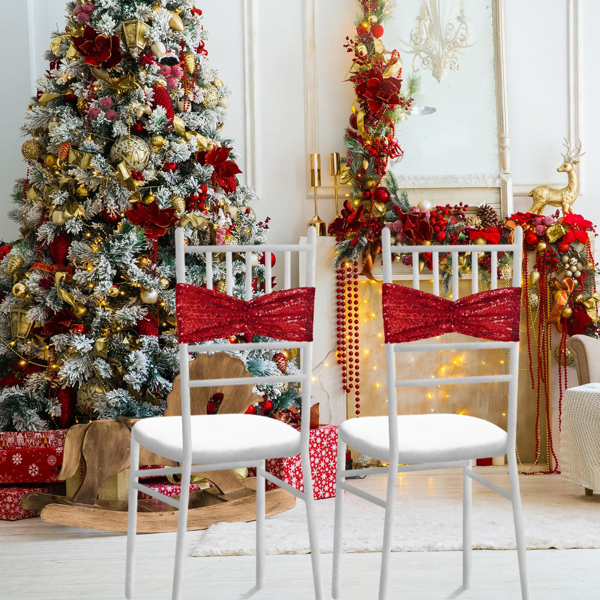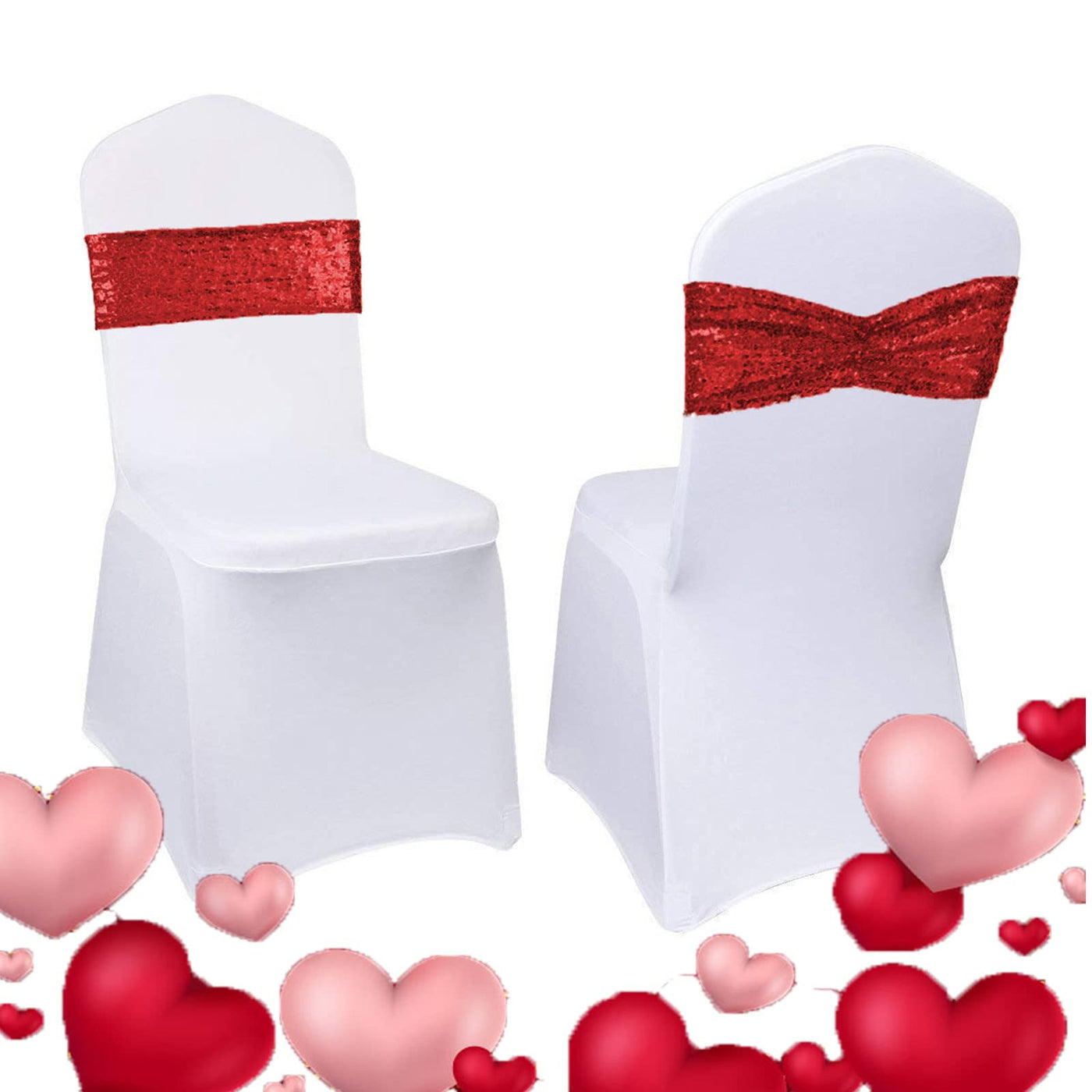 Eternal Beauty Set Of 20 Sequin Chair Sashes Red Chair Sashes For Wedding Valentine'S Day Hotel Party Banquet Chairs Decorations