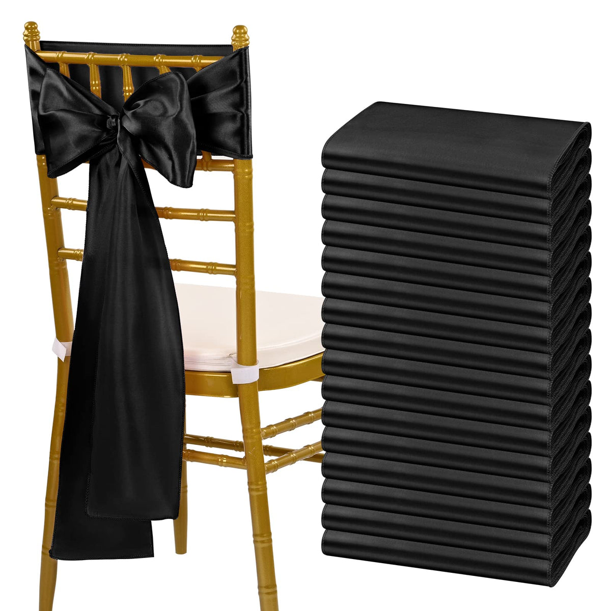 Fani 60 Pcs Black Satin Chair Sashes Bows Universal Chair Cover For Wedding Reception Restaurant Event Decoration Banquet,Party,Hotel Event Decorations (7 X 108 Inch)