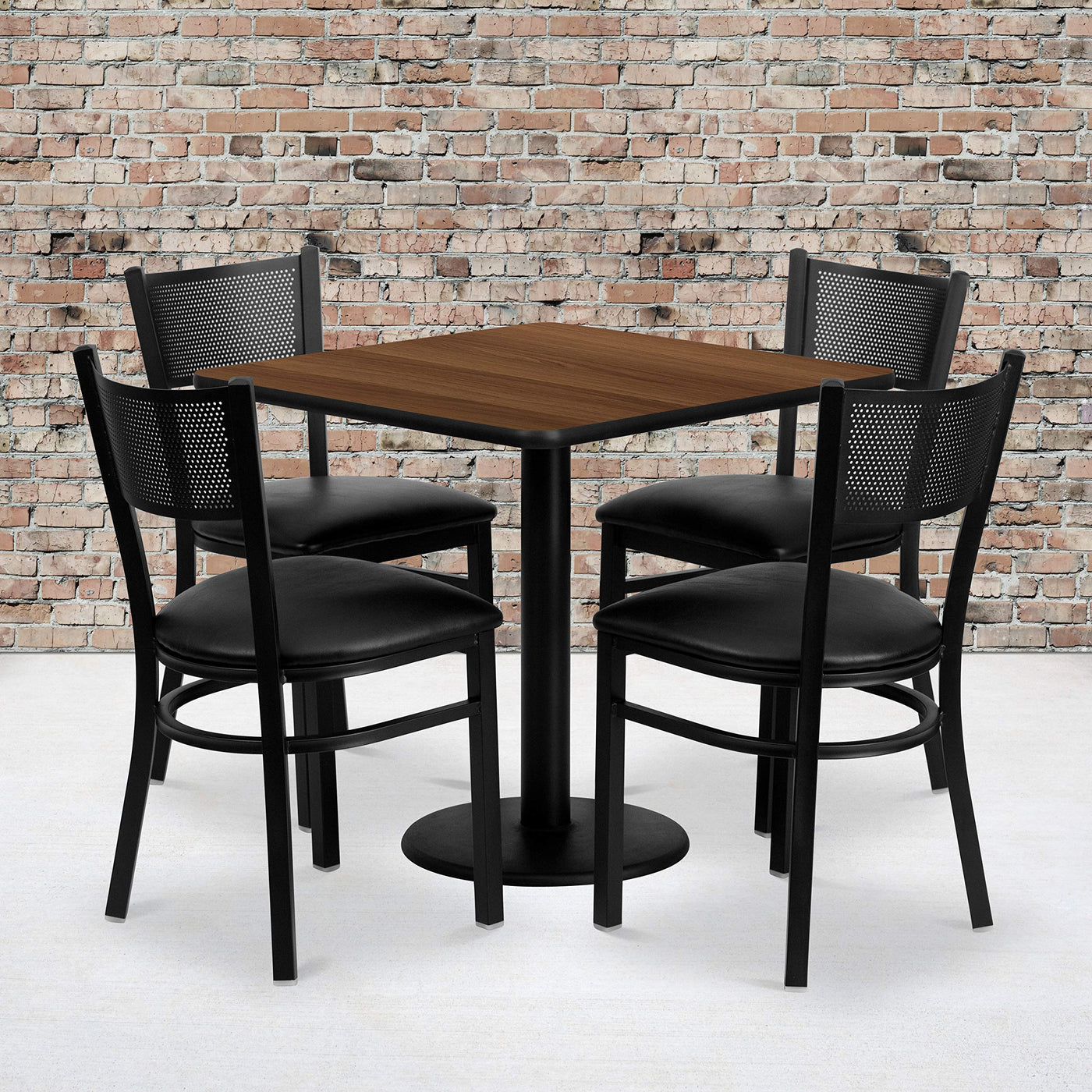 Flash Furniture 30'' Square Walnut Laminate Table Set With 4 Grid Back Metal Chairs - Black Vinyl Seat