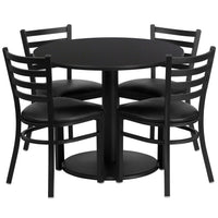 Flash Furniture 36'' Round Black Laminate Table Set With Round Base And 4 Ladder Back Metal Chairs - Black Vinyl Seat