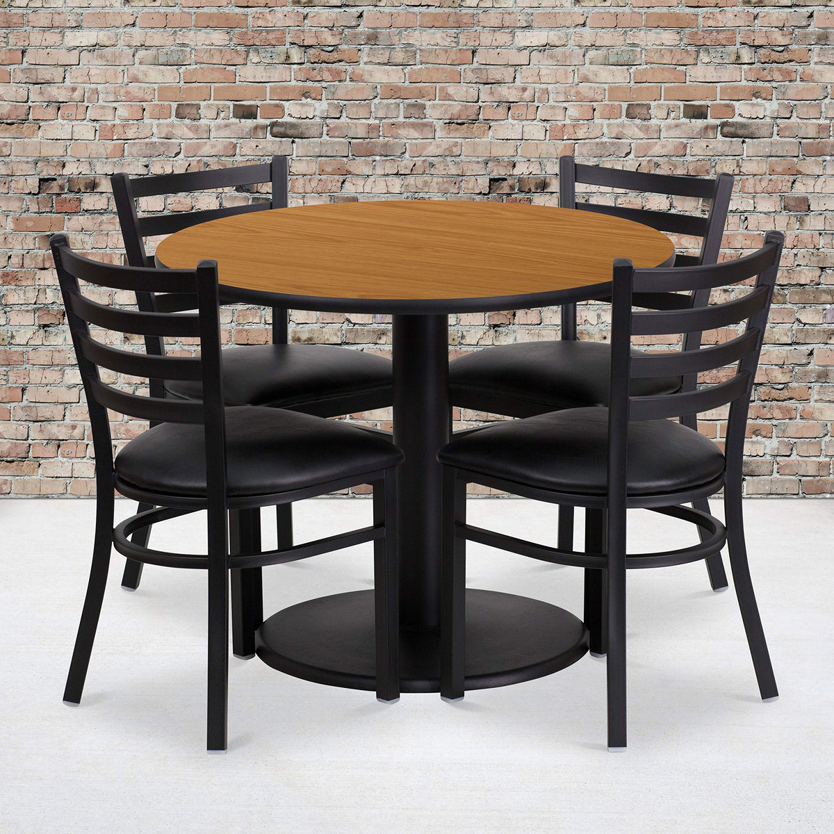 Flash Furniture 36'' Round Natural Laminate Table Set With Round Base And 4 Ladder Back Metal Chairs - Black Vinyl Seat