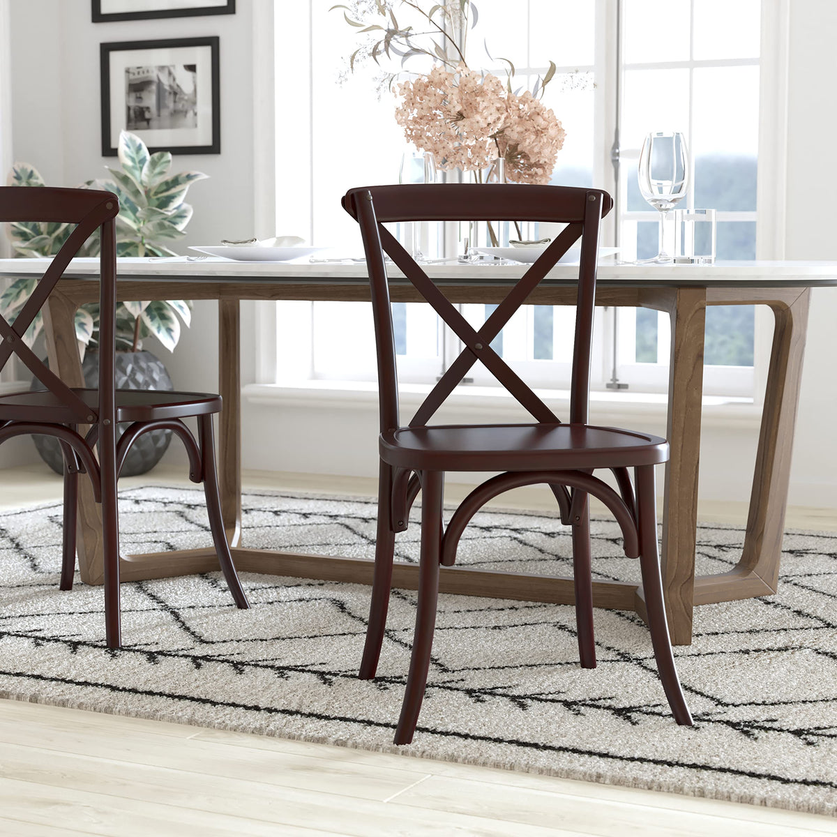 These Walnut X-Back Chair Are An Ideal Complement To Elegant Banquet Halls, Wedding Event Facilities And Dining Venues. Each Cross Back Chair Features A Solid Elm Woodconstruction With A Sturdy Bent Wood Back. These X Back Chairs Ship Fully Assembled And Are Stackable Up To 8 High For Easy Storage And Portability.