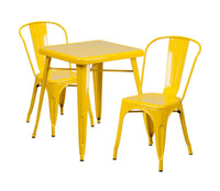 Flash Furniture Commercial Grade 23.75' Square Yellow Metal Indoor-Outdoor Table Set With 2 Stack Chairs