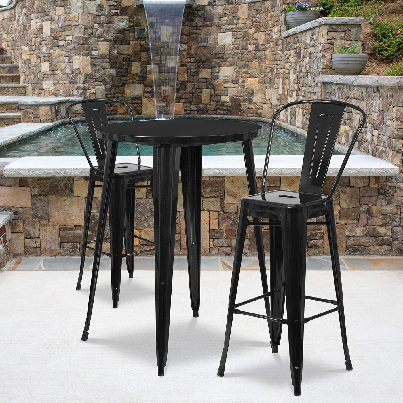 Flash Furniture Commercial Grade 30" Round Black Metal Indoor-Outdoor Bar Table Set With 2 Cafe Stools