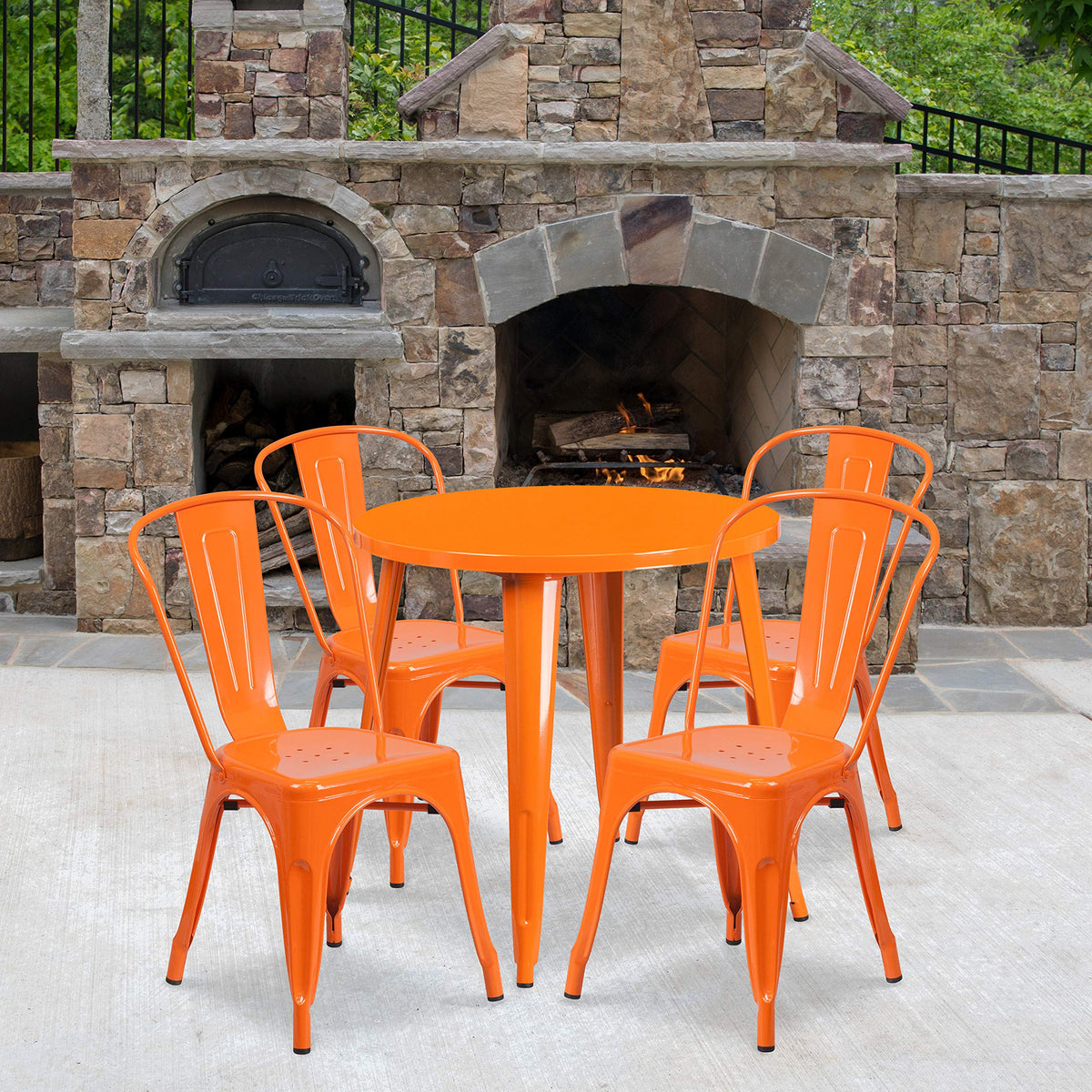 Flash Furniture Dalton Commercial Grade 30" Round Orange Metal Indoor-Outdoor Table Set With 4 Cafe Chairs