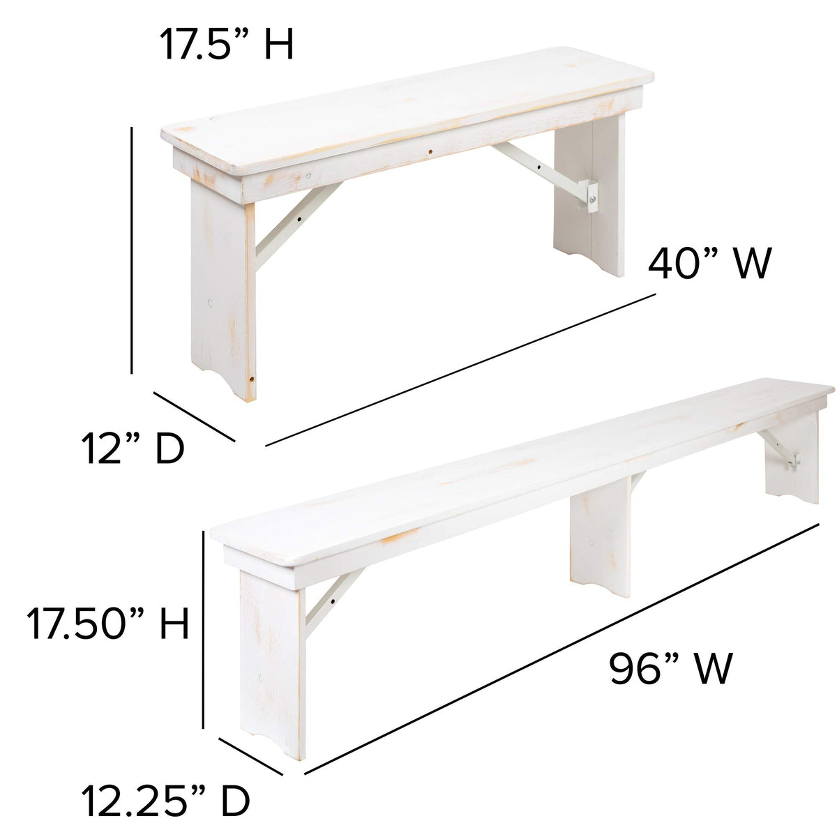 Flash Furniture Hercules Series 8' X 40' Antique Rustic White Folding Farm Table And Four Bench Set