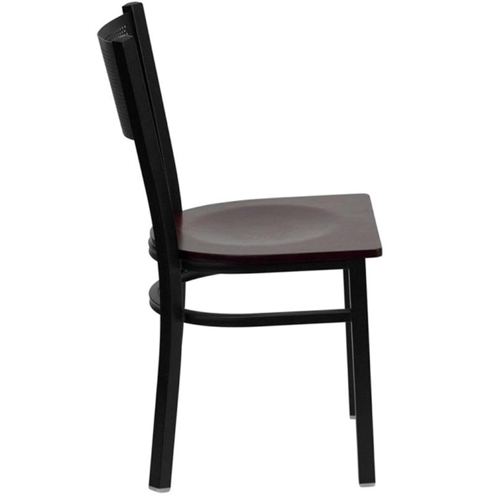Flash Furniture Hercules Series Black Grid Back Metal Restaurant Chair - Mahogany Wood Seat
