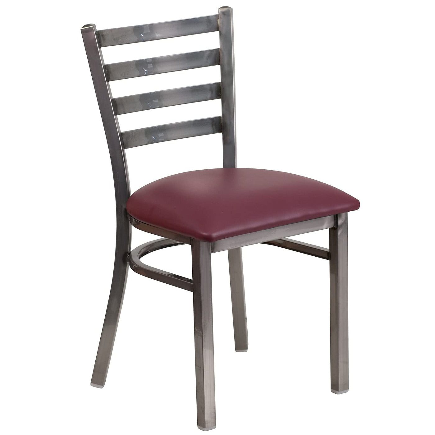 Flash Furniture Hercules Series Clear Coated Ladder Back Metal Restaurant Chair - Burgundy Vinyl Seat