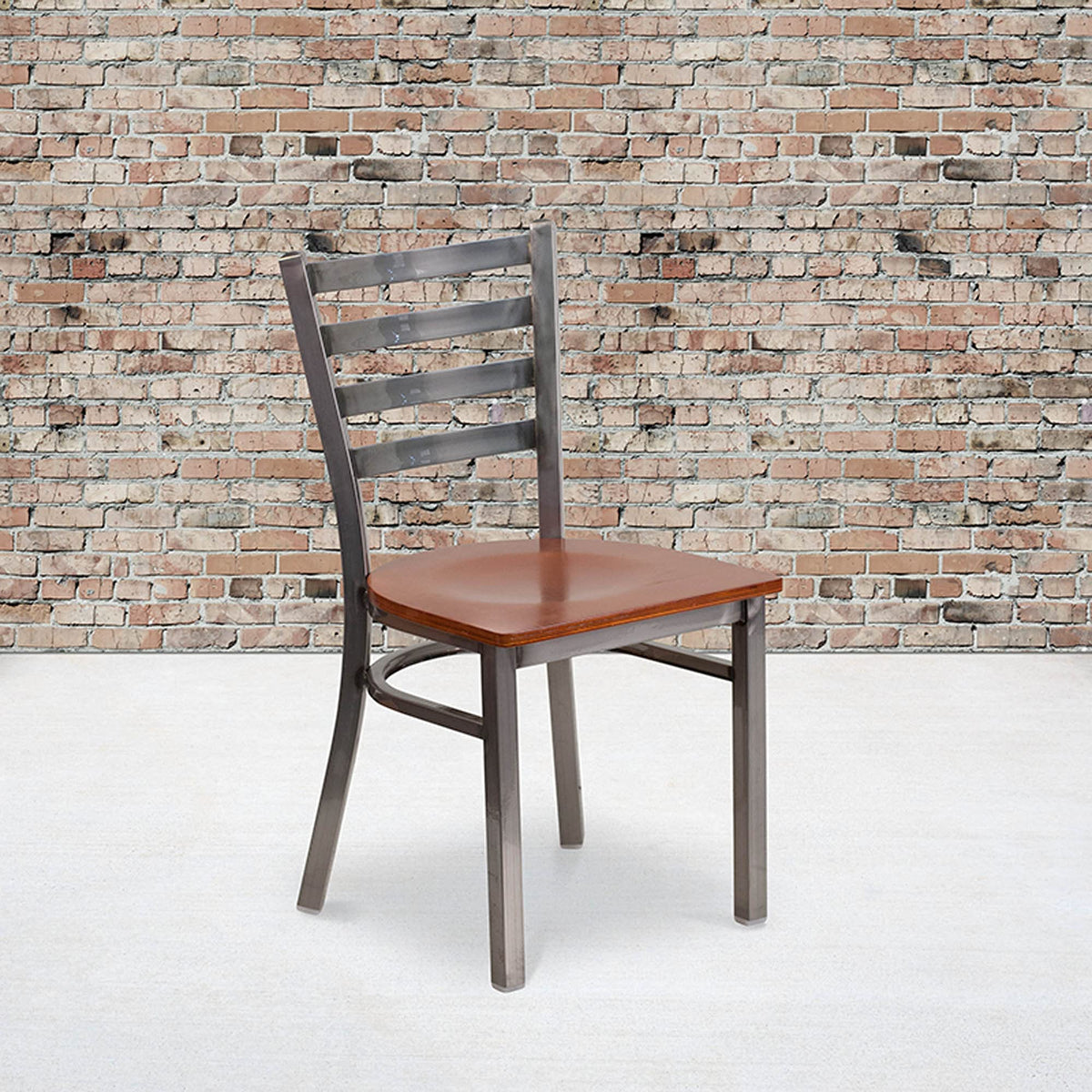 Flash Furniture Hercules Series Clear Coated Ladder Back Metal Restaurant Chair - Cherry Wood Seat