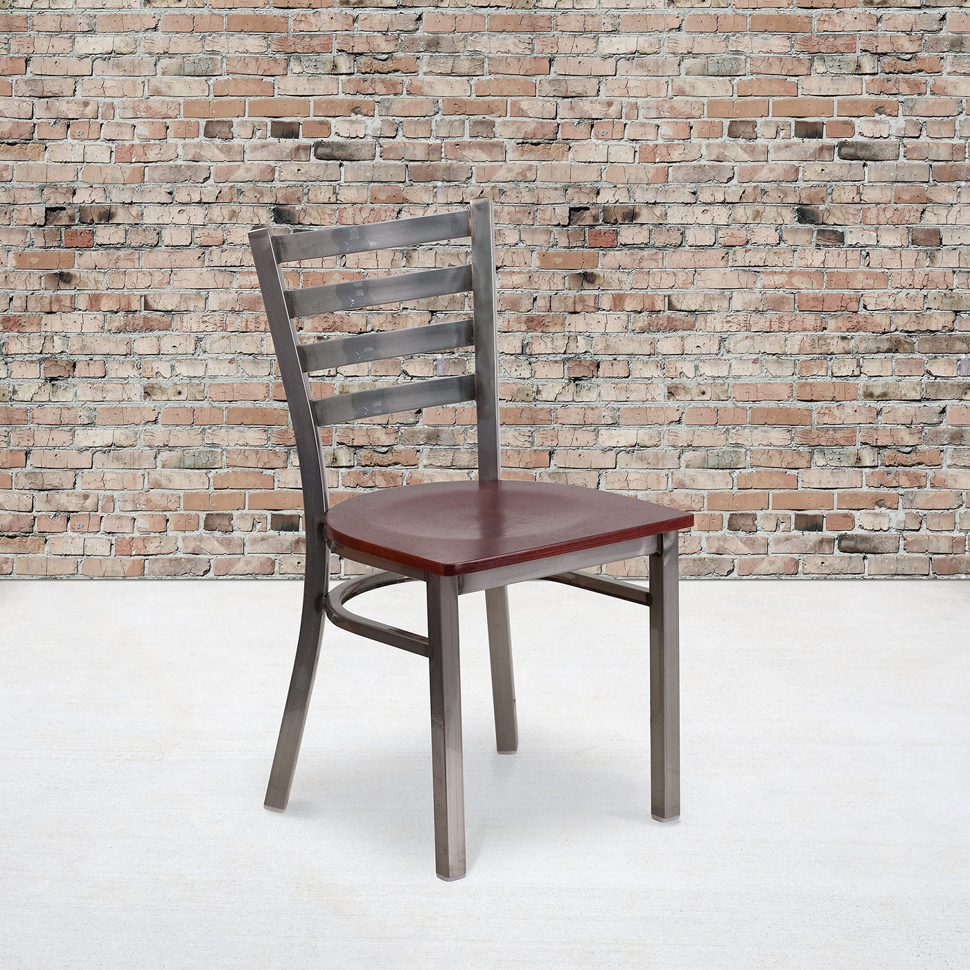 Flash Furniture Hercules Series Clear Coated Ladder Back Metal Restaurant Chair - Mahogany Wood Seat