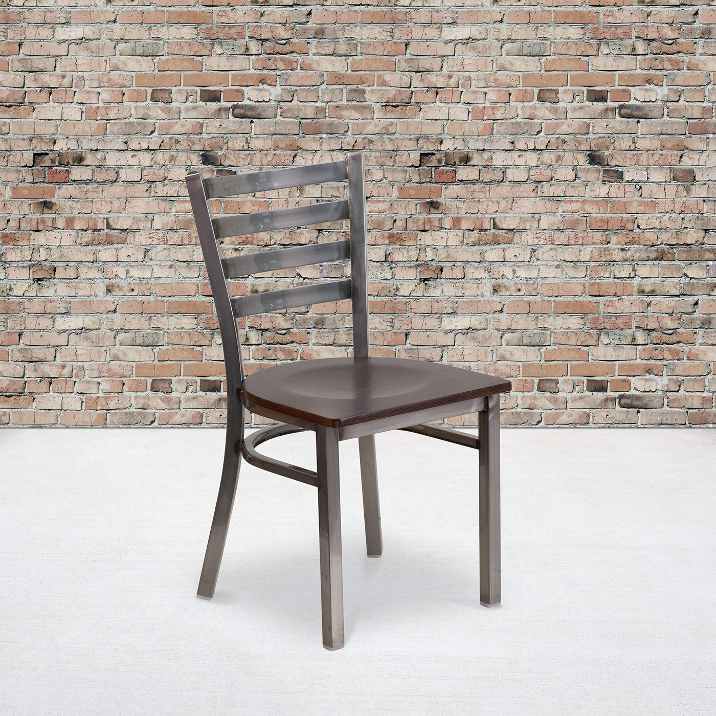 Flash Furniture Hercules Series Clear Coated Ladder Back Metal Restaurant Chair - Walnut Wood Seat