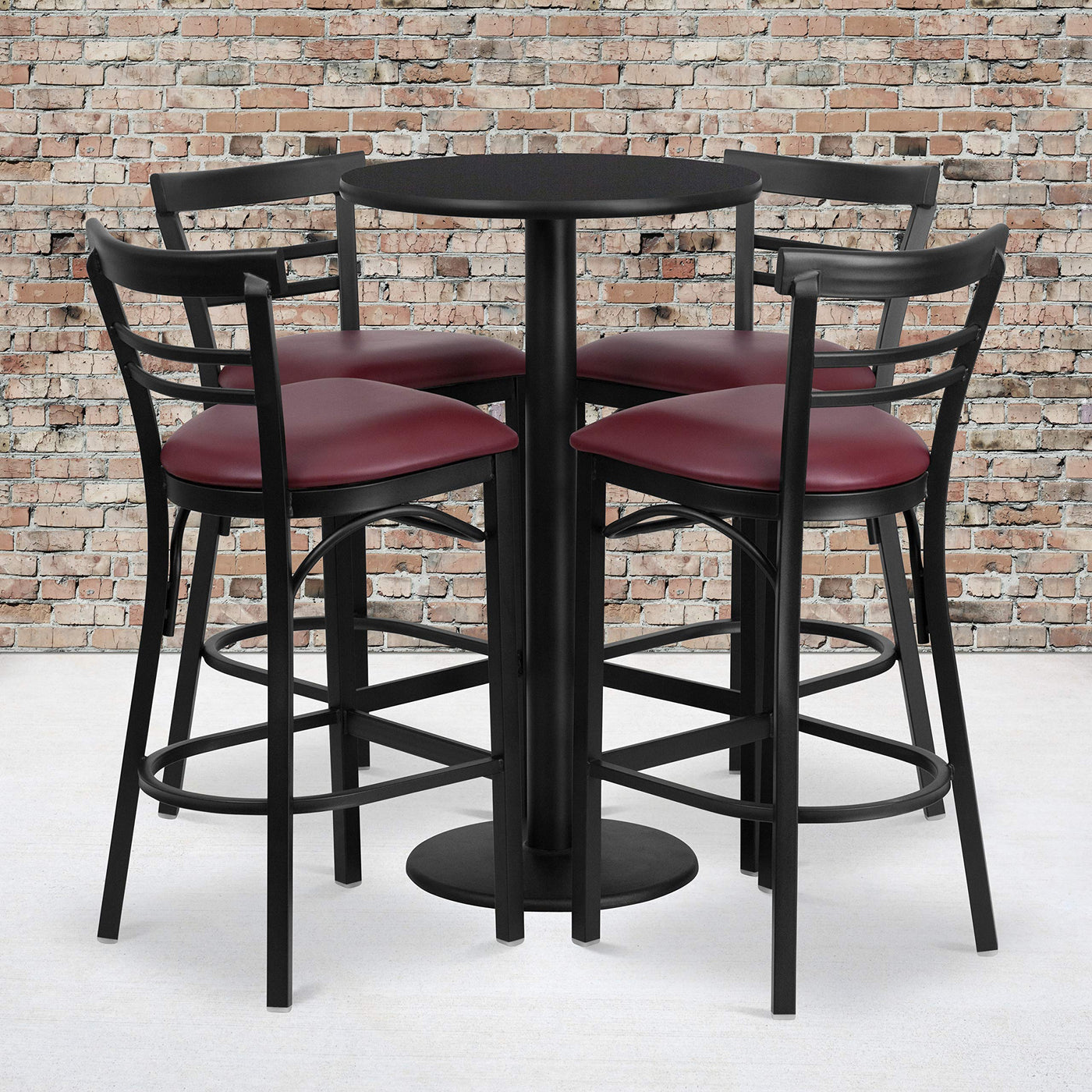Flash Furniture Jamie 24'' Round Black Laminate Table Set With Round Base And 4 Two-Slat Ladder Back Metal Barstools - Burgundy Vinyl Seat