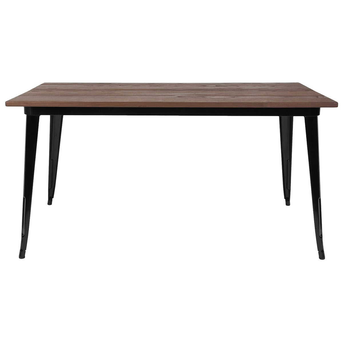 Flash Furniture Kenneth 30.25" X 60" Rectangular Black Metal Indoor Table With Walnut Rustic Wood Top