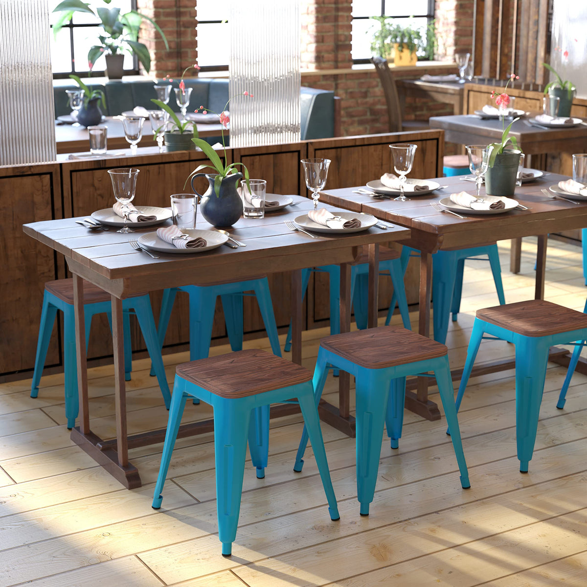 Flash Furniture Metal Dining Table Height Stool with Wooden Seat Set of 4 - Backless Teal Kai Commercial Grade Stool - Kai 18" Stackable Dining Chairs