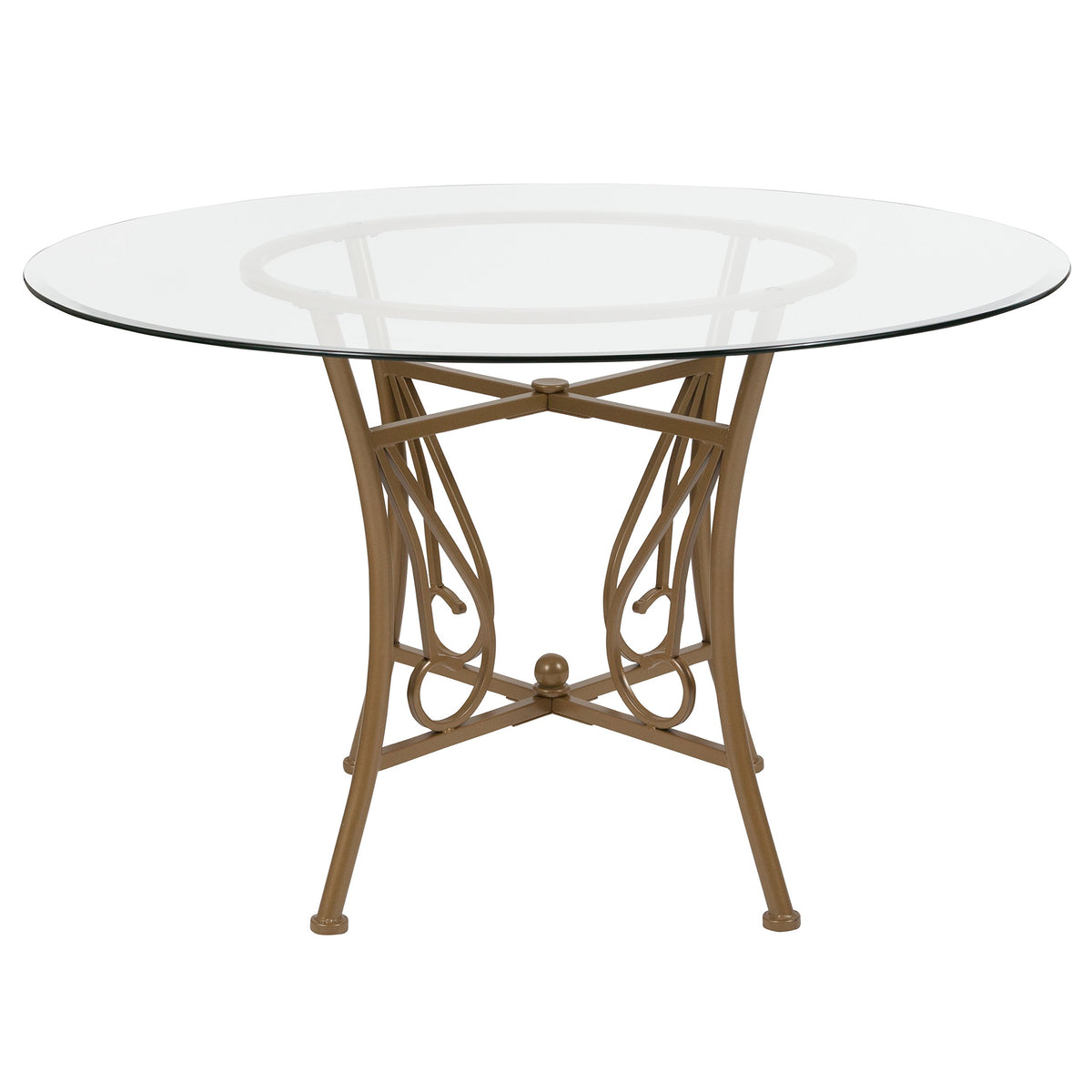 Building The Perfect Dining Room Is Easier When You Have A Great Foundation. Starting With An Exquisite Ornamental Pedestal Base This Glass Topped Dining Table Is Off To A Phenomenal Start. Crowned By A Round, Thick Glass Top With Beveled Edges That Shimmer In The Light, This Striking Table Will Add An Elegant Aspect To Your Dining Room Or Kitchen. On The Practical Side, Floors Are Protected With Floor Glides In Case Of Accidental Movement Or Rearrangement. Gather Family And Friends To Enjoy Great Meals Around This Dazzling Table.
