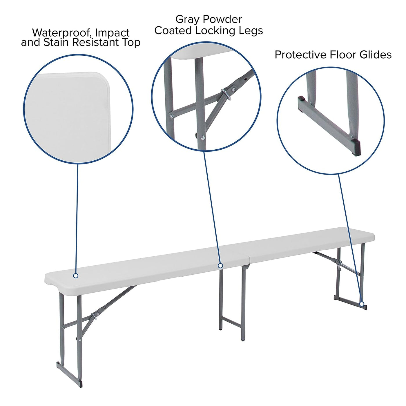 Flash Furniture Talbott 10.25''W x 71''L Bi-Fold Granite White Plastic Bench with Carrying Handle