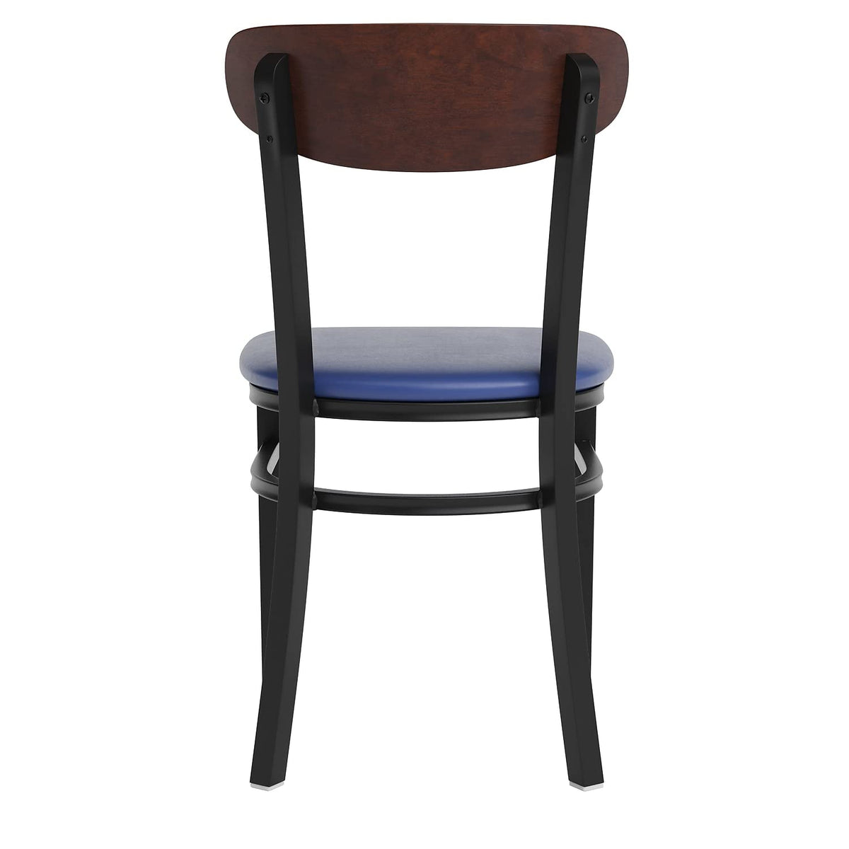 Welcome guests time after time with a new era of long-lasting but beautiful commercial seating. Designed for use in the hospitality industry, as well as your busy household, these dining chairs offer vinyl seats available in multiple colors and wooden boomerang backrests available in 2 finishes atop ultra-strong, powder coated steel frames that hold up to 500 lbs. static weight. The lower bracing serves double duty as a footrest to relieve pressure from the legs for a comfortable seating experience. Assembly takes less than 10 minutes and a damp cloth is all that is required for easy cleanup. Available in dining height as well, this sleek modern stool is ideal for restaurants, pubs, cafe, or your kitchen counter or basement bar.