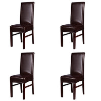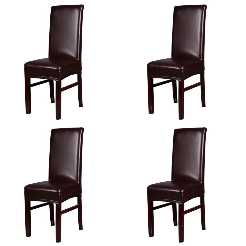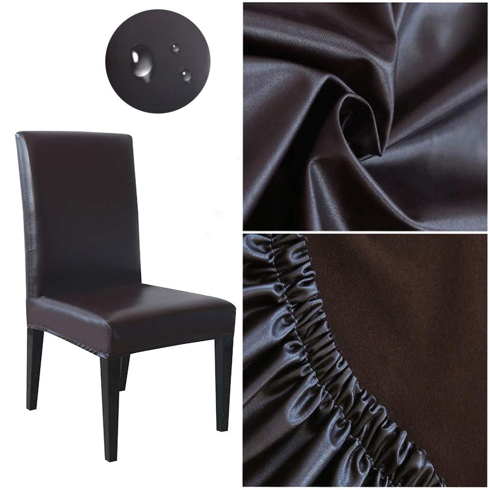 Flyparty Stretch Solid Pu Leather Waterproof Dining Chair Cover Slipcover Removable Washable Short Dining Chair Cover Protector Seat Solid Slipcovers For Hotel,Dining Room,Wedding (Brown, 4)