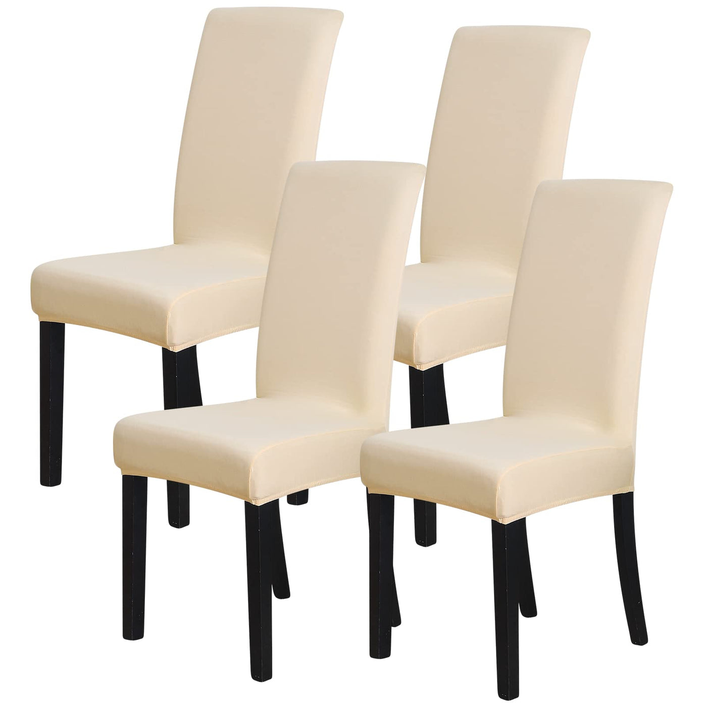 Forcheer Chair Covers For Dining Room Set Of 4 Pack Stretch Beige Chair Slipcovers For Parson Chairs 4 Pieces Washable Removable