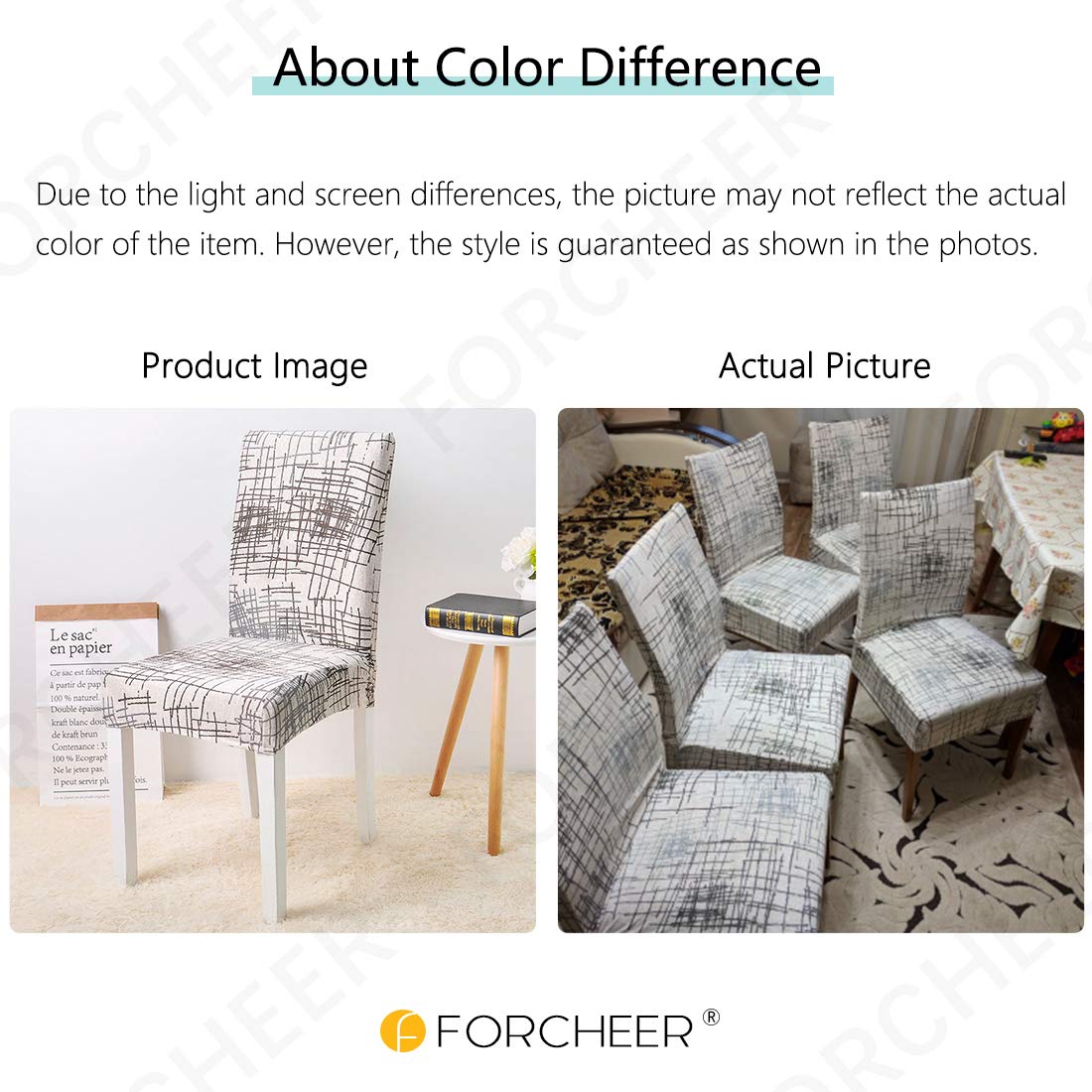 ? Better Than Your Expected: Forcheer Dining Chair Cover Is Made Of 92% Polyester And 8% Spandex Fabric. Ultra-High Elasticity, Durable, Wrinkle-Resistant, Freshen Up Your Interior Decor. ? Recommended Chair Size: Back Height 20-23Inch(50-60Cm);Seat Length 14-20Inch(36-50Cm);Seat Width 14-20Inch(36-50Cm). Please Make Sure Your Chairs Are Well Within The Measurements Given. ? Easy-Care: Screenprint Technology Used For Strong Colorfastness. Machine Washable In Cold Water. Wash Separately At A Gentle Cycle. Using Mild Laundry Detergent. Forcheer Is Manufacturing The Same Pattern Of Sofa Covers, Please Browse To The Bottom Of The Page. ? Widely-Usage: Forcheer Dining Chair Cover Fit For Most Of Parsons Chair. Office, Company, Hotel, Wedding Banquet, Meeting, Celebration, Ceremony, Family Dining Room Decoration, Etc. ? Wrong-Free: We Are Confident In Our Products’ Quality. If You Aren'T Satisfied With Your Purchase. Any Problem Please Contact Us The First Time. We Will Offer The Best Solution For You.